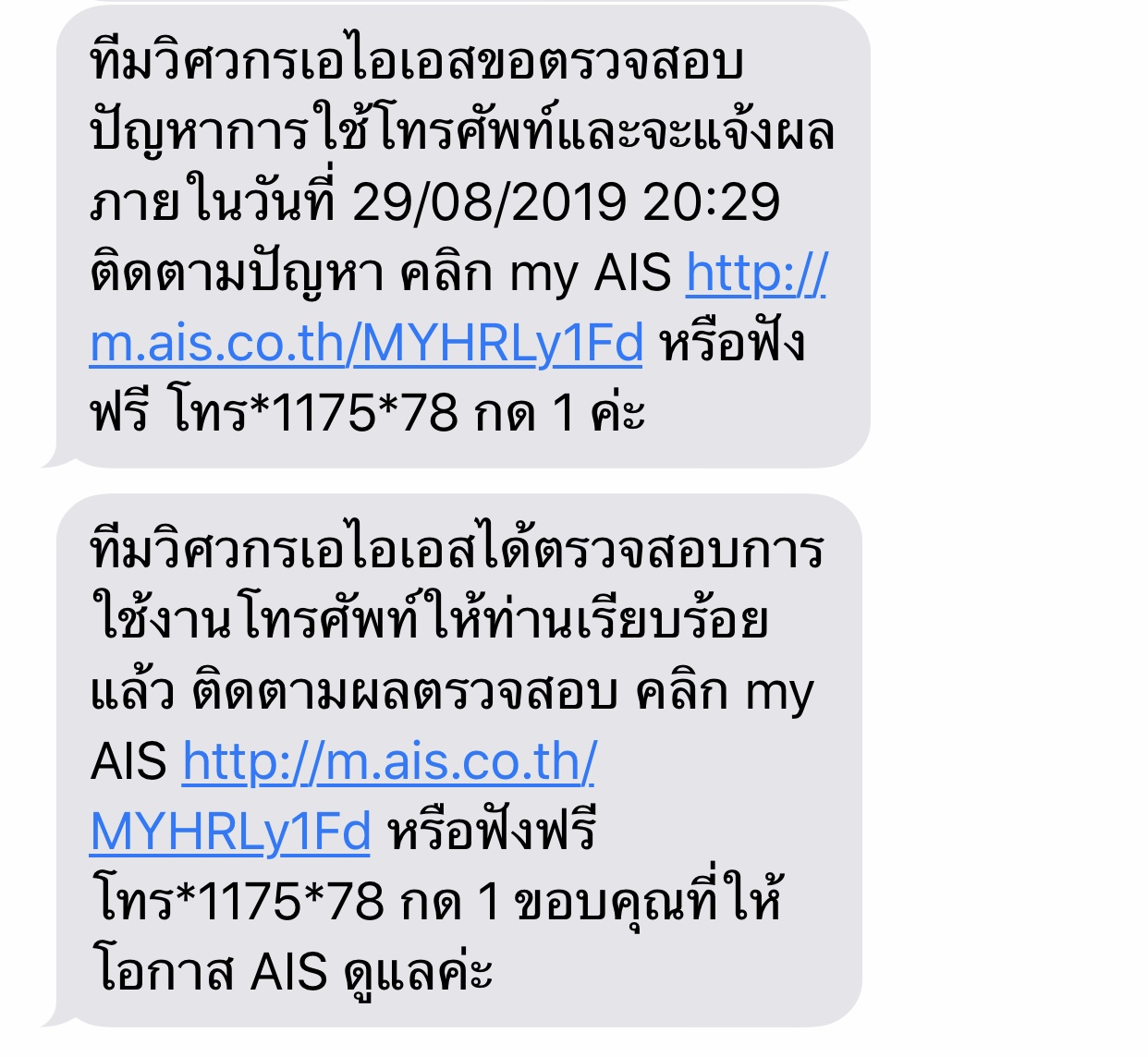 คือเราอยู่ จ.สุรินทร์ค่ะ แต่เป็นอำเภอที่ไกลจากเมืองประมาณ 80 กม.ได้ สัญญาณเน็ตแย่มากเลยค่ะ 4G ไม่เคยเกิน 2 ขีดเลย พอเรา สวิช เป็น 3G ก็เล่นได้บ้างไม่ได้บ้าง เคยติดต่อ call center ไป 1 ครั้ง และไปแจ้งที่ศูนย์บริการ อีก 1 ครั้ง ทั้งสองรอบ ได้รับข้อความมาตามรูปด้านบนเลยค่ะ ลิ้งค์ที่แนบมา เข้าไม่ได้ และไม่ทราบว่าดำเนินไปถึงไหนแล้ว และมีการแก้ไขอย่างไรก็ไม่ทราบได้ เราอึดอัดมากเลยค่ะ เพื่อนร่วมงานเราที่ใช้ค่ายนี้ ก็บ่นเหมือนกัน ที่มาโพส เพราะอยากให้ ais ตรวจสอบและแก้ไข้จริงๆนะคะ เพราะโทรไปทีไร กว่าจะคุยกับพนักงานได้ ก็แนะนำให้เรารีเซต network setting ทุกครั้ง และบอกจะตรวจสอบ ก็เป็นแบบนี้ทุกครั้ง เราจ่ายไปเดือนละเป็นพัน แต่ความรู้สึกเหมือนเล่น edge เลยค่ะ