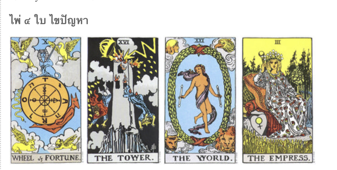 แปลไพ่4ใบไขปัญหาให้หน่อยค่ะ คิดหนักมากตอนนี้
