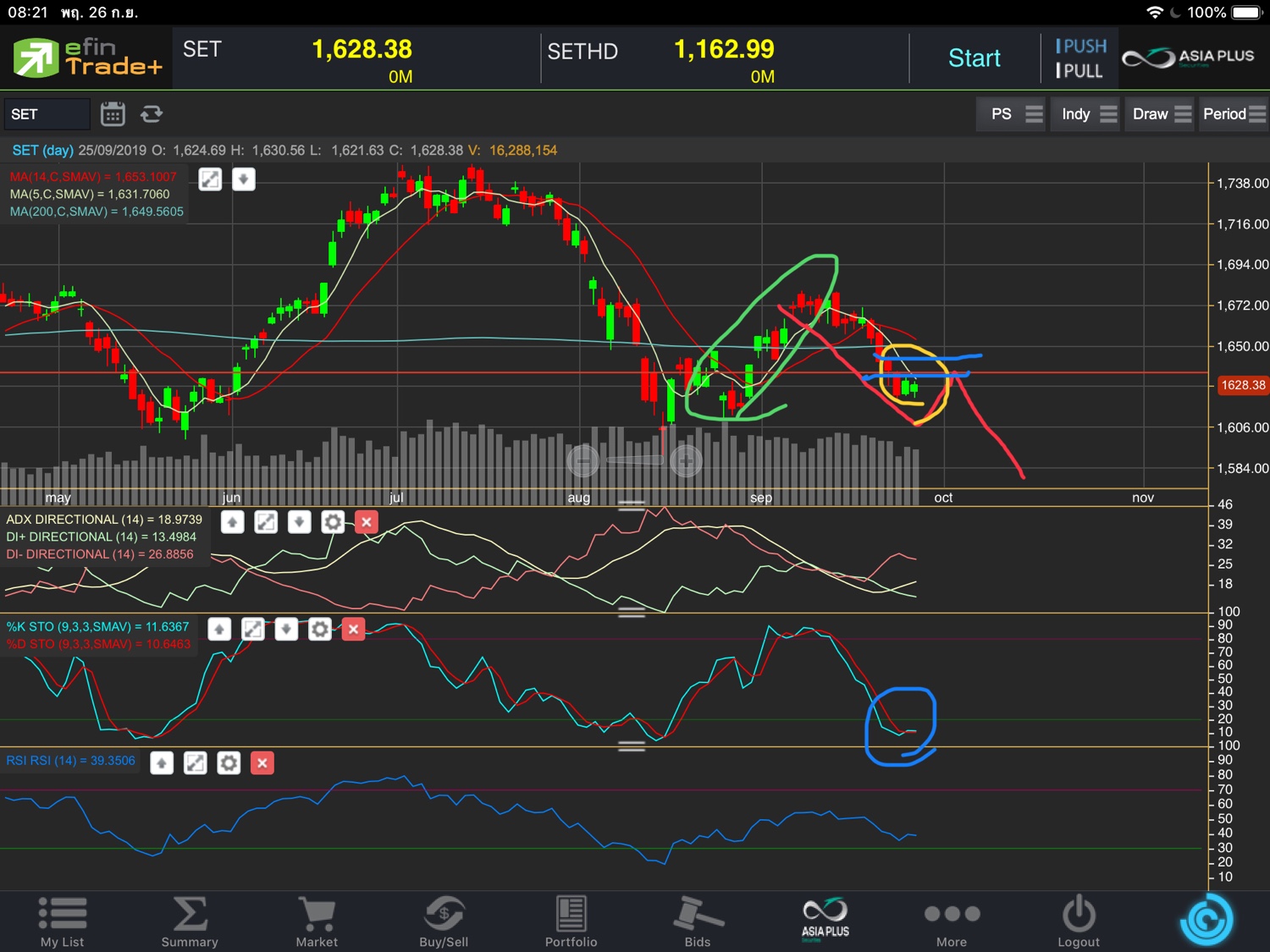วันนี้. วัดผลจะเริ่มขาเด้งก่อน. เพื่อลง. หรือลงเลย. เด้งไป. ต้านเรียงตัวขวางหลายเส้น. 1630–1633—1642—1645—1650