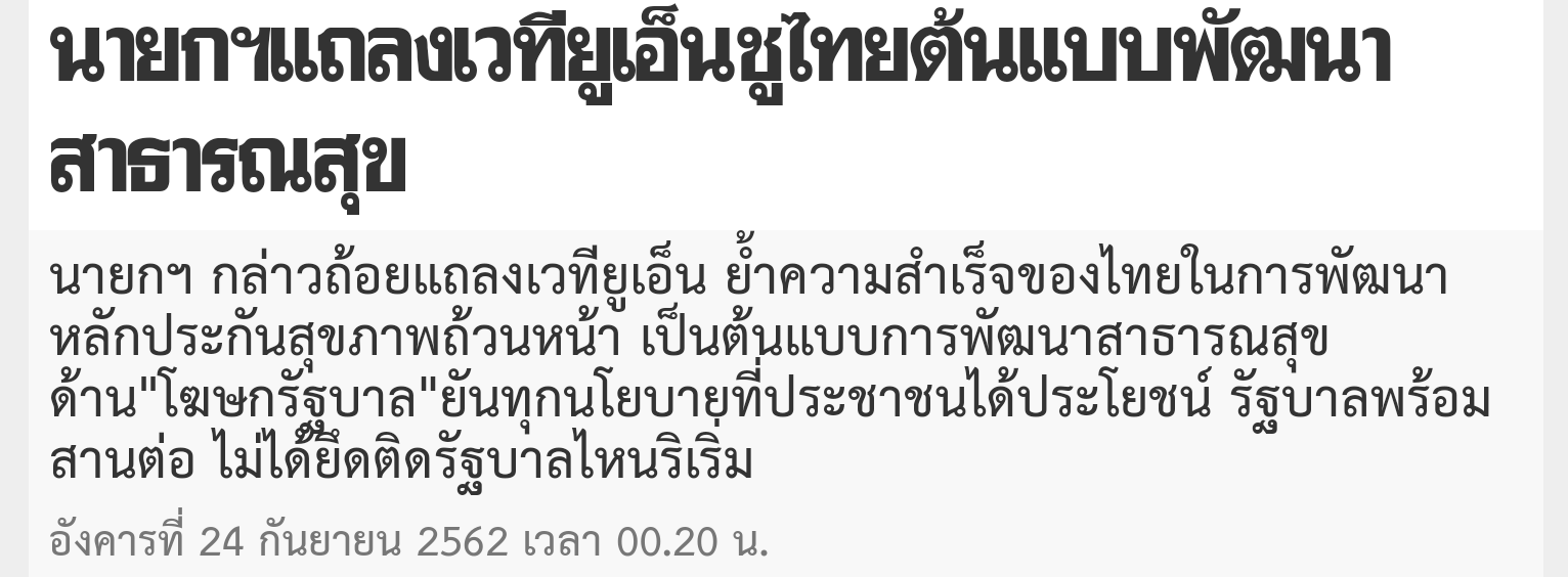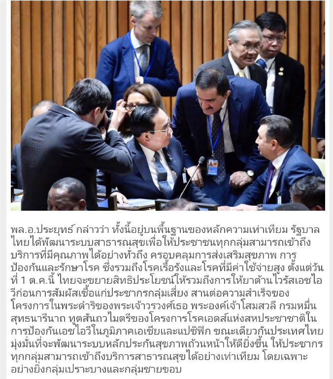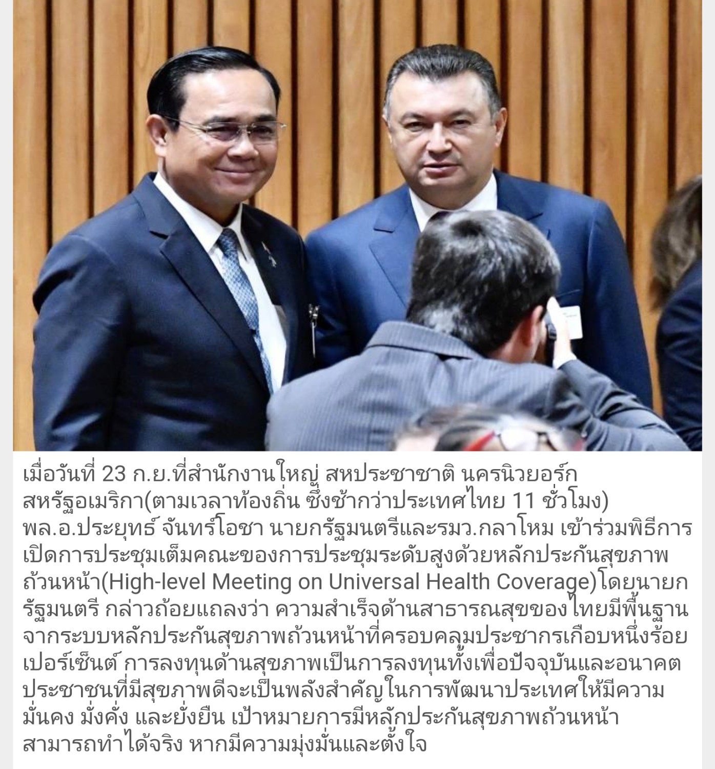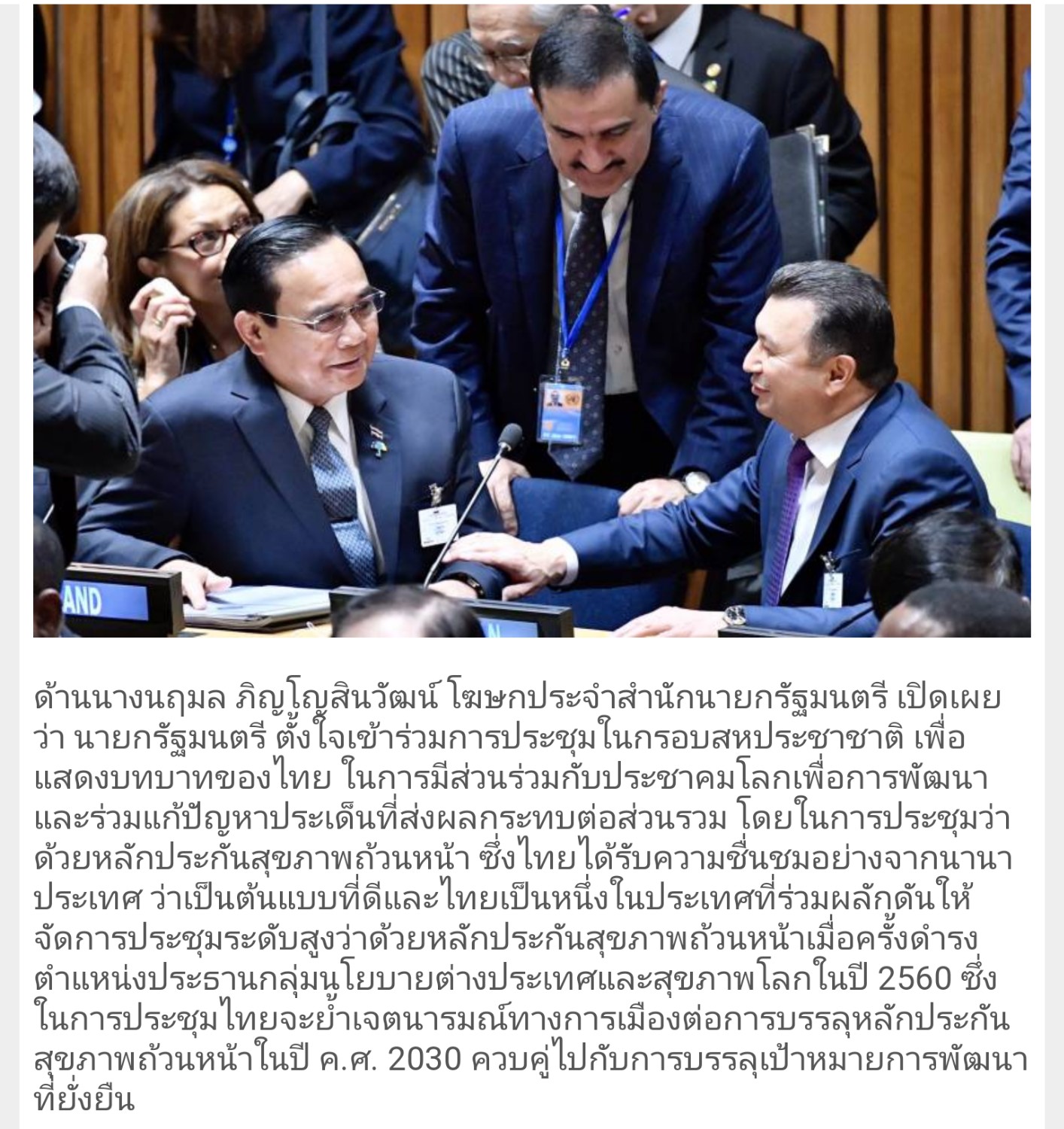 นายกฯแถลงเวทียูเอ็นชูไทยต้นแบบพัฒนาสาธารณสุข
