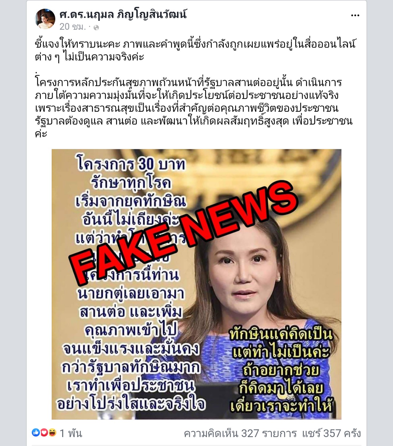 ขอบคุณเฟซบุ๊ก ดร.นฤมล ภิญโญสินวัฒน์