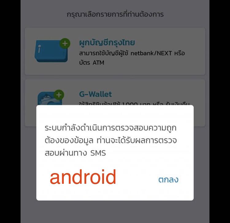 - เข้ายืนยันสิทธิ์ในแอพเป๋าตังค์แล้ว สแกนบัตร สแกนหน้าแล้ว มันขึ้นว่า "ระบบกำลังดำเนินการตรวจสอบความถูกต้องของข้อมูล ท่านจะได้รับผลการตรวจสอบผ่านทาง sms" แบบนี้ต้องรออีกนานมั้ยคะ เข้า G-wallet ไม่ได้ ตกลงว่าได้หรือไม่ได้คะ