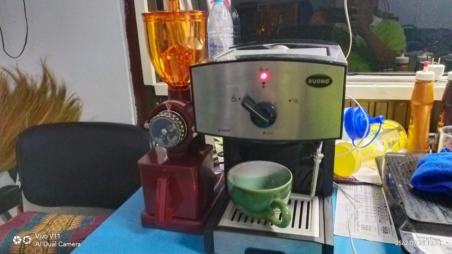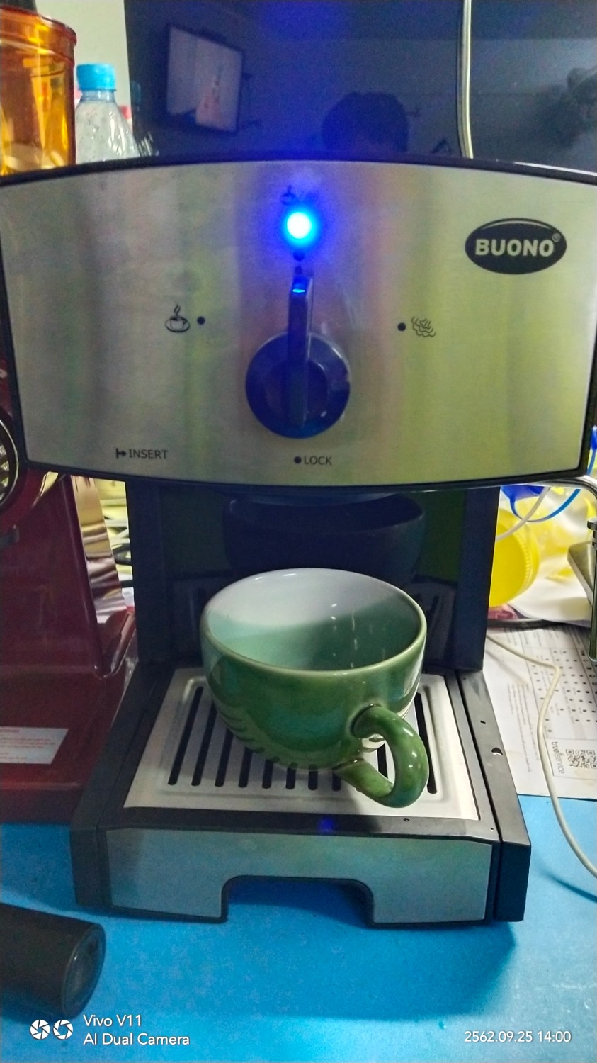 เลยได้เจ้านี่มาครับ เครื่องชงกาแฟ Buono ราคา 3,400 บาท พร้อมกับเครื่องบด 600N ราคา 1,200 บาท เอาไว้ชงกินที่ทำงานครับ