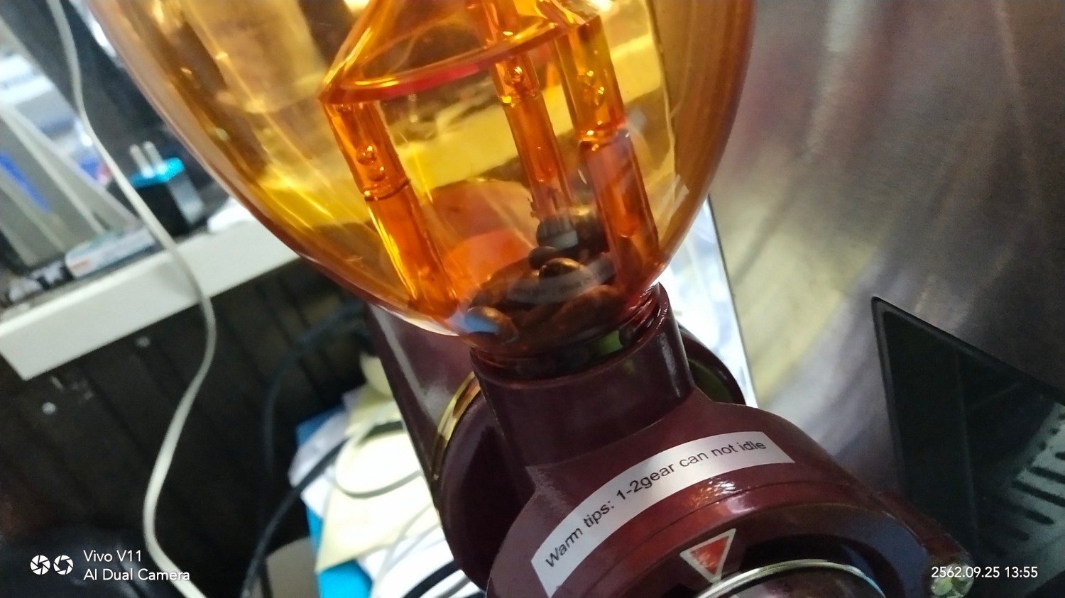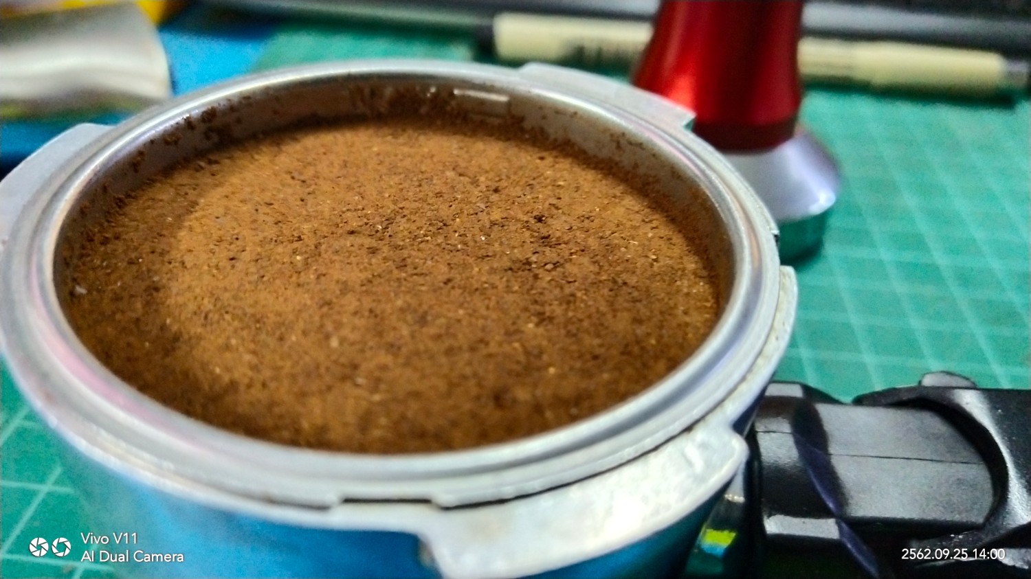 3.ความละเอียดผมปรับไว้ประมาณ เบอร์ 2 นิดๆ ครับ จะได้กาแฟเพอร์เฟคช๊อต ที่ประมาณ 60 ml. ที่เวลาประมาณ 22-30 วินาทีครับ อันนี้ต้องปรับเองและอัดกาแฟเองจะรู้ครับว่าใช้แรงกดประมาณไหนครับ