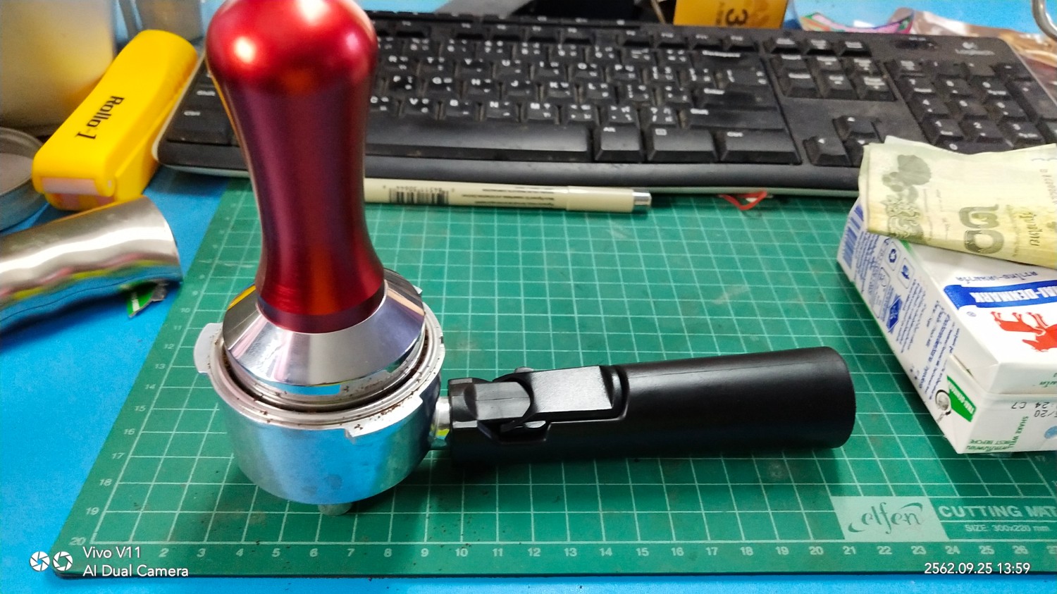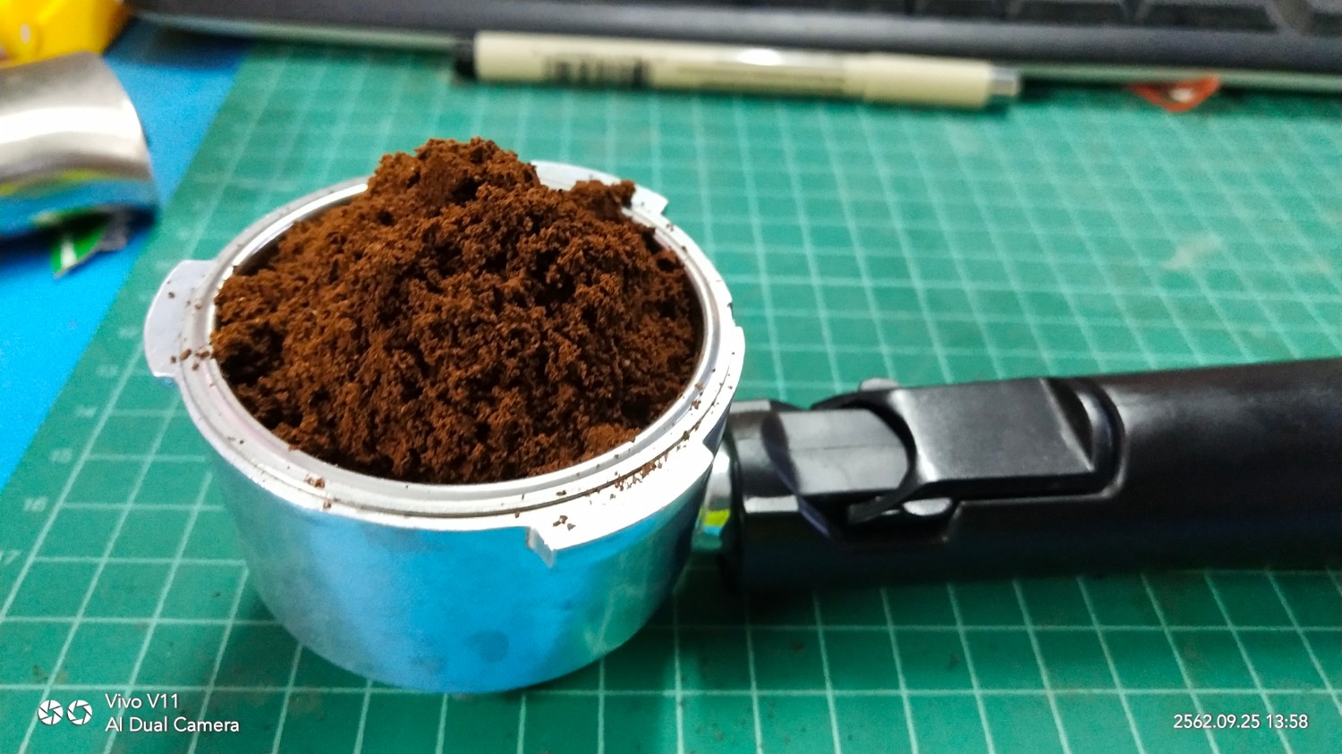 6.กดด้วยที่กดกาแฟ รุ่นนี้ใช้ก้านชงขนาด 51 mm. ลืมบอกไปครับ ที่กดซื้อมาต่างหากครับ กดด้วยแรงที่สม่ำเสมอทุกครั้งครับ แรงกดกาแฟ ความละเอียดมีผลต่อการได้เพอร์เฟคซ็อต (เพอร์เฟคซ็อตผมคือ ผมใช้ตะกร้าชง 2 cup 60 ml. ที่เวลาประมาณ 22-30 วินาทีครับ) ต้องหาความพอดีด้วยตนเองครับ