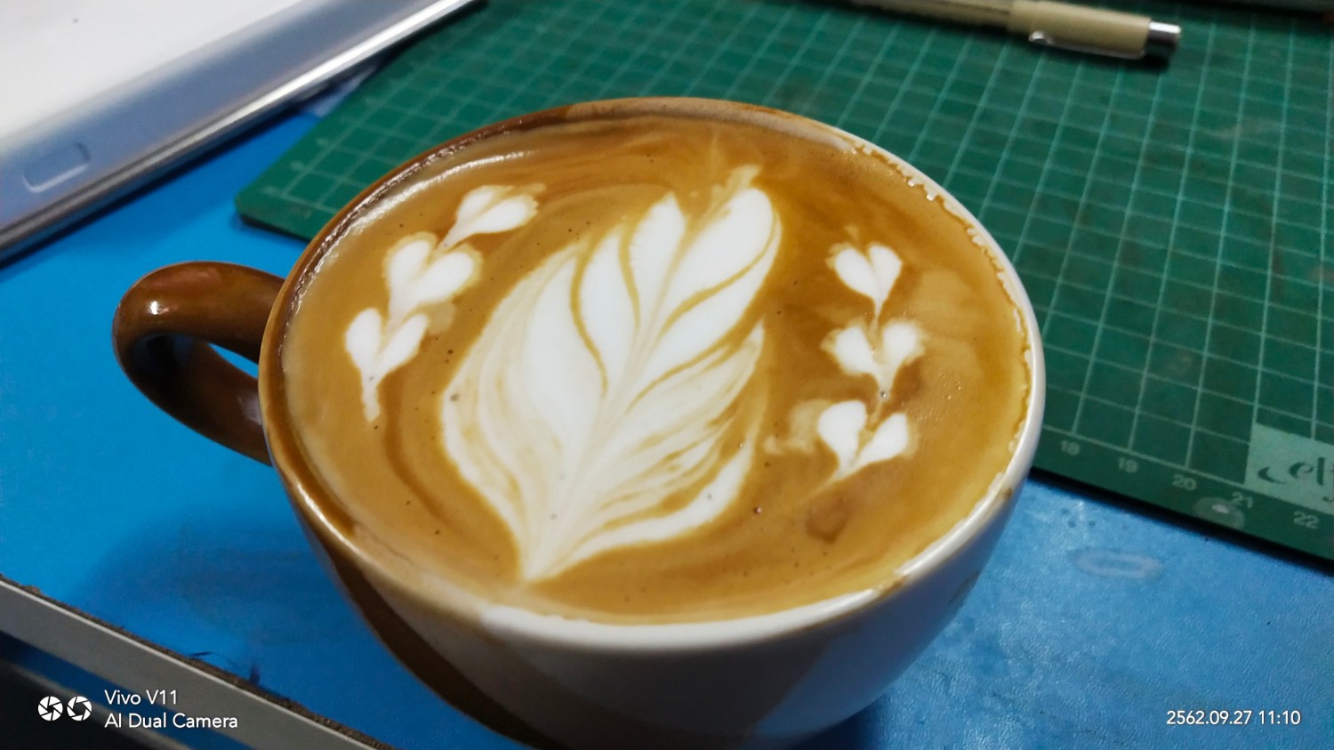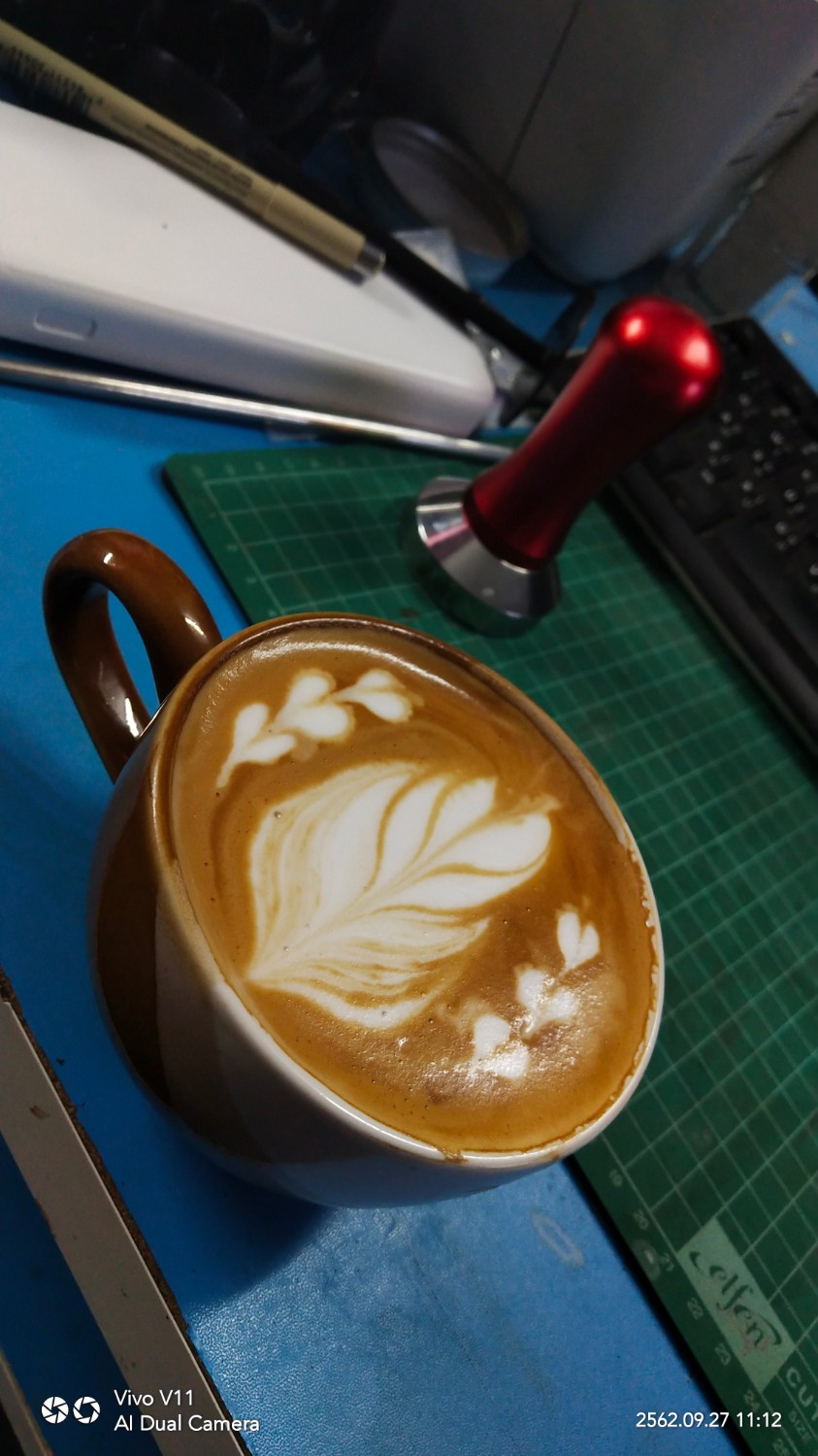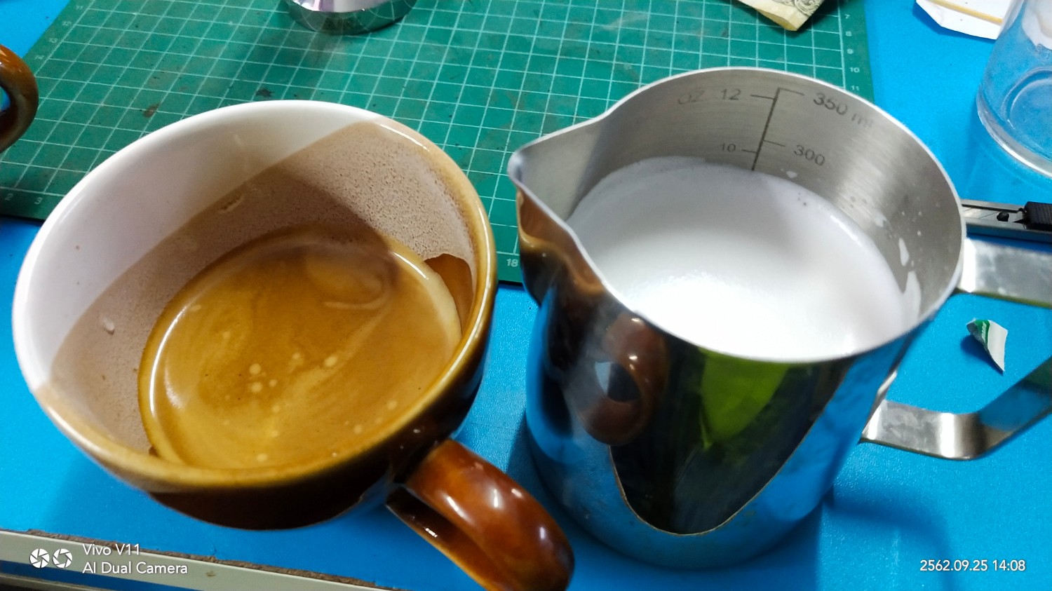 จากที่ด้วยอยากกินกาแฟสดแบบชงเอง เลยซื้อหม้อต้มกาแฟ moka pot กับที่บดกาแฟมือหมุนมา ก็ตอบสนองตัญหาได้นิดหนึ่ง คราวนี้หล่ะเลยติดกาแฟเลยครับ นั่งดูนั่งศึกษาเขาชงลาเต้อาร์ตเห็นมันเท่ห์ดี เลยมานั่งคิดเอาว่ะลองทำดู ตอนแรกก็ใช้เครื่องปั๊มโฟมกับหม้อต้มกาแฟ moka pot สรุปทำไม่ได้เพราะมันละเอียดไม่พอจนกลายคาปูชิโน่แทน กับตัว moka pot สร้างครีม่า(ฟองกาแฟ) ได้น้อย 555