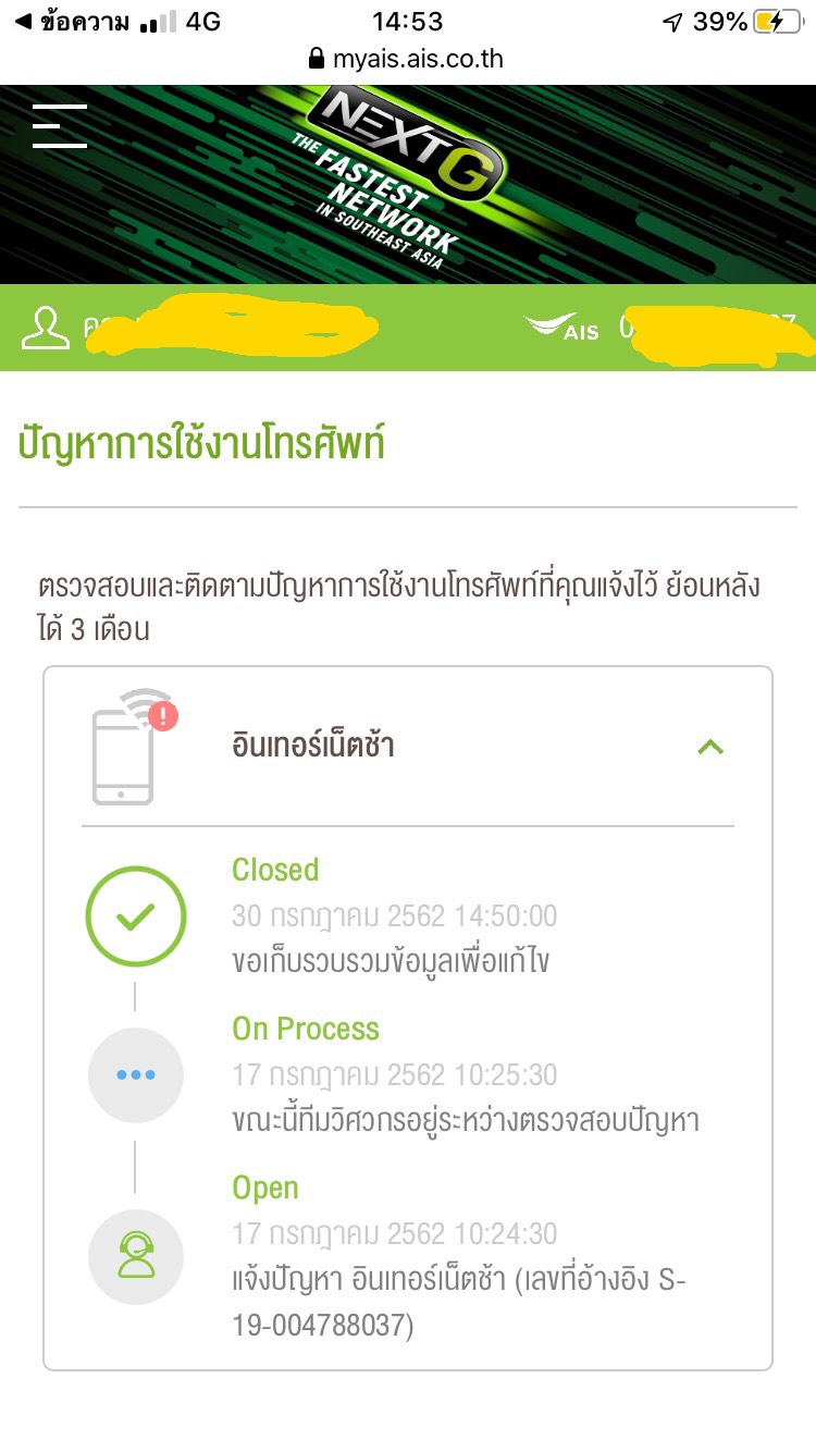 ** ต้องบอกก่อนว่า เราเคยโทรแจ้งทาง 1175 แล้ว ทางศูนย์เค้าแจ้งว่าจะให้ ทีมวิศวกร AIS ตรวจสอบ