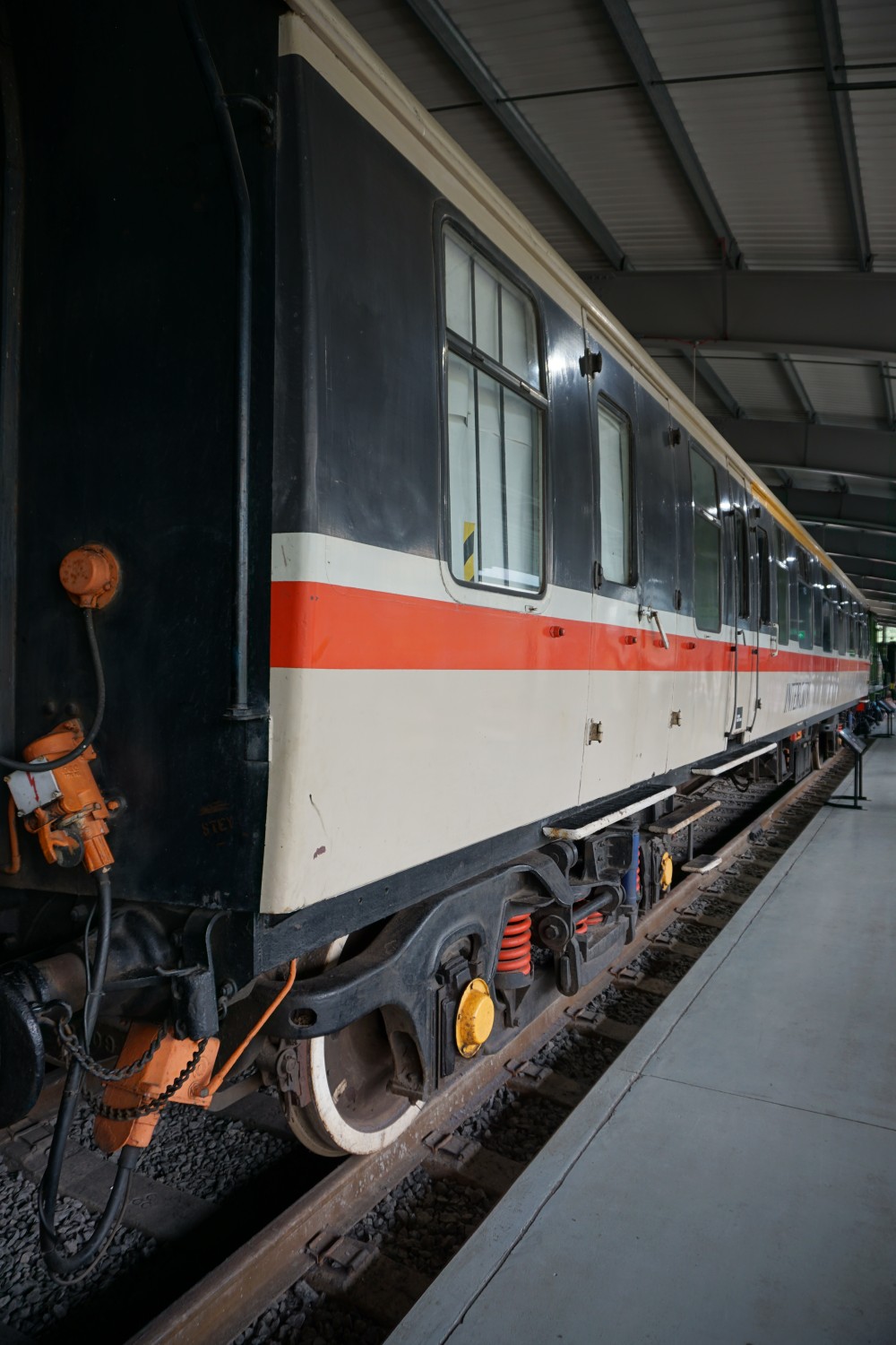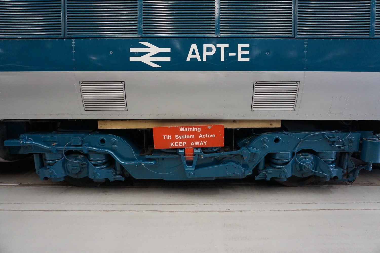 หนึ่งในสิ่งของที่นำมาจัดแสดงที่ผมเห็นว่าน่าสนใจมากคือ APT-E (Advanced Passenger Train Experimental) อันเป็นจุดเริ่มต้นของเทคโนโลยีเอียงรถไฟรับกับทางโค้งโดยใช้อุปกรณ์แอ็กทิฟ (Active Tilting Train) ในปัจจุบัน เทคโนโลยีนี้สามารถพบได้ทั่วไปในรถไฟความเร็วสูงรถไฟระหว่างเมือง รถด่วนพิเศษ รถไฟท่องเที่ยวและรถไฟที่มุ่งเน้นให้ผู้โดยสารมีประสบการณ์ที่สบายขณะเดินทาง