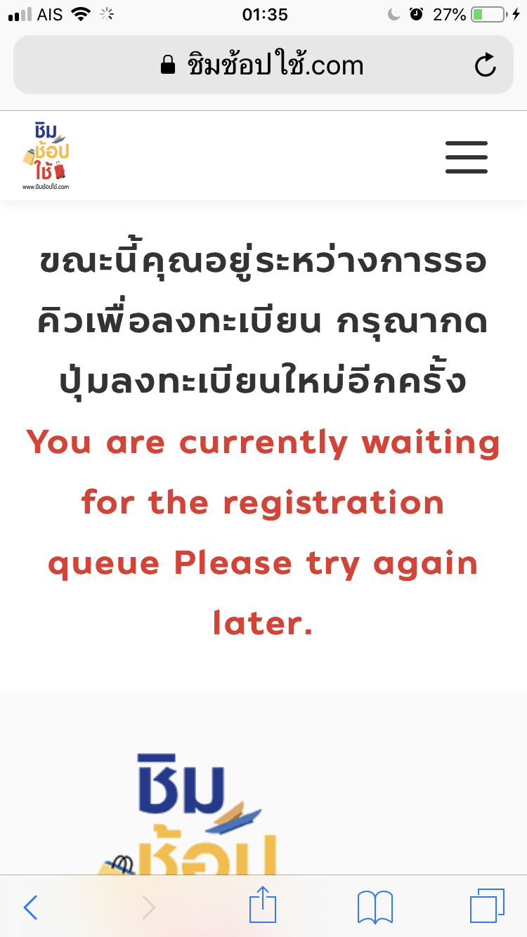 ชิมช้อปใช้ ขึ้นข้อความเดิมตลอด เข้าไม่ได้เลยตั้งแต่เที่ยงคืนถึงตี 1.40