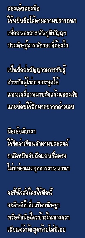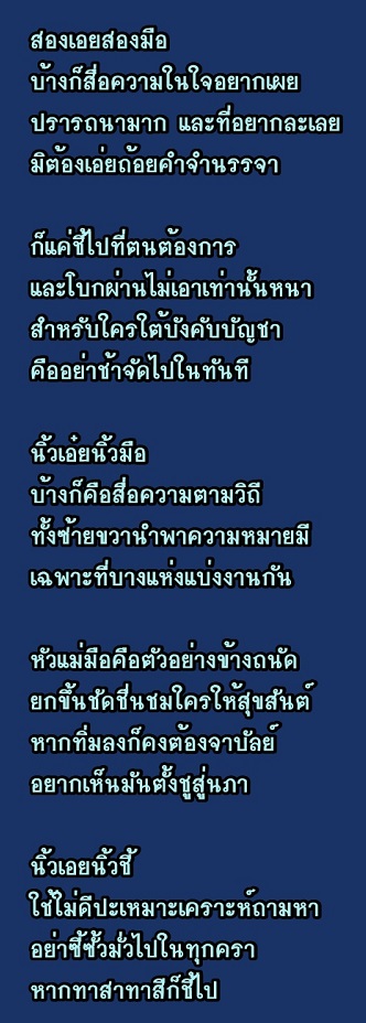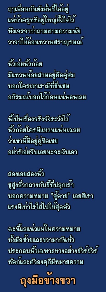 สำหรับกระทู้นี้ จขถม. แรก เขียนเรื่องเกี่ยวกับ "มือ" ครับ ว่ามีความสำคัญอย่างไร และถุงมือหลัง ก็มาเติมต่อ เสริมเนื้อความให้พิสดารออกไปอีก