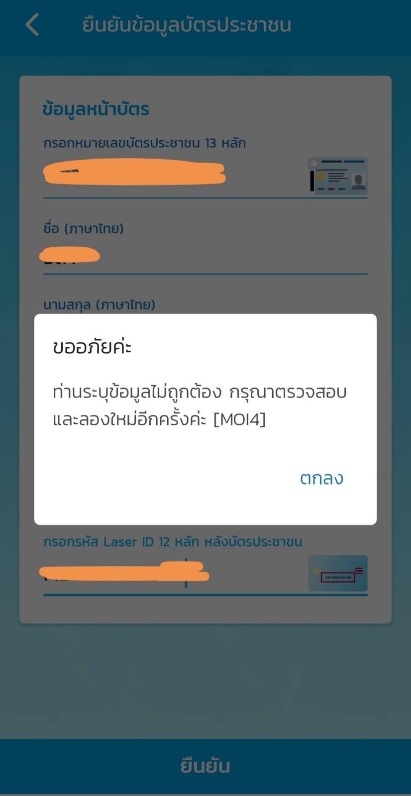 เท่าที่อ่านส่วนใหญ่ติดขั้นตอนสแกนใบหน้า แต่ของเราติดตั้งแต่ยืนยันข้อมูลบัตรจร้า เกิดจากเหตุอันใด แก้ไขอย่างไรได้บ้างค่ะ