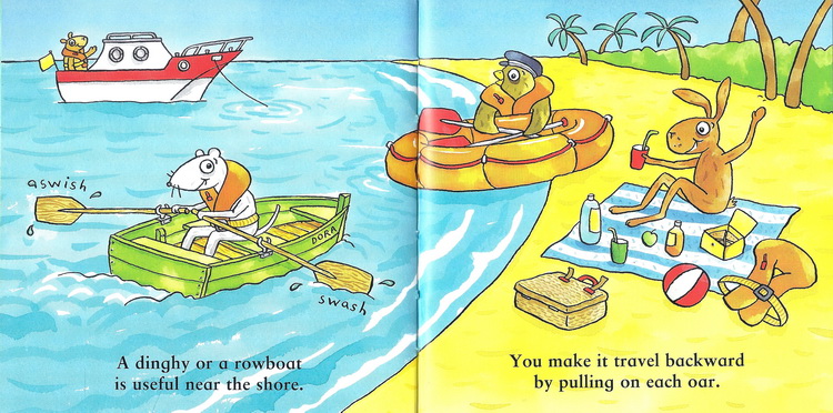 เรื่องราวเกี่ยวกับยานพนะที่เด็กๆ ชื่นชอบ อย่างเช่น Airplane Truck Boat Submarines Train เป็นต้น แต่ละเล่มจะอธิบายหน้าที่ การทำงานของยานพาหนะต่างๆ คำศัพท์ไม่ยากจนเกินไป เนื้อหาไม่เยอะ
