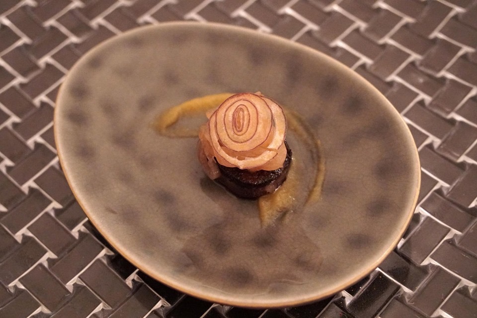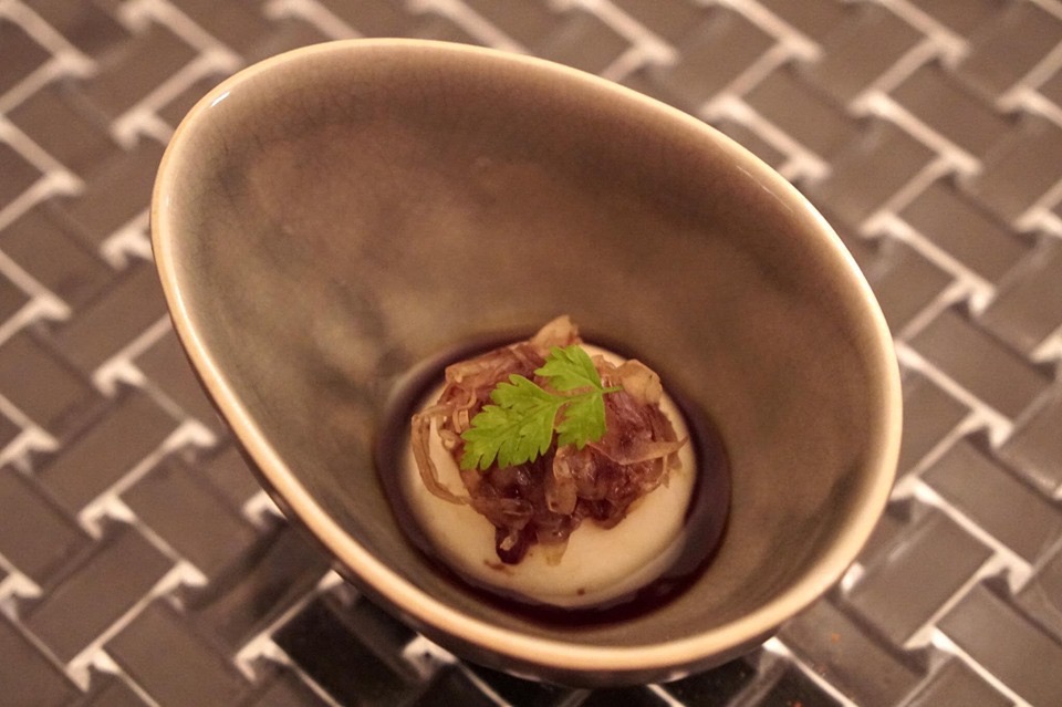 พานาคอตต้าขนาดจิ๋ว ทำจากกะหล่ำดอก ทอปด้วยซาวเคร้าท์ สมุนไพรสเปรี้ยว เรียกน้ำย่อยให้กับเราก่อนเริ่มทานอาหารจานหลักได้ดี (13/20)