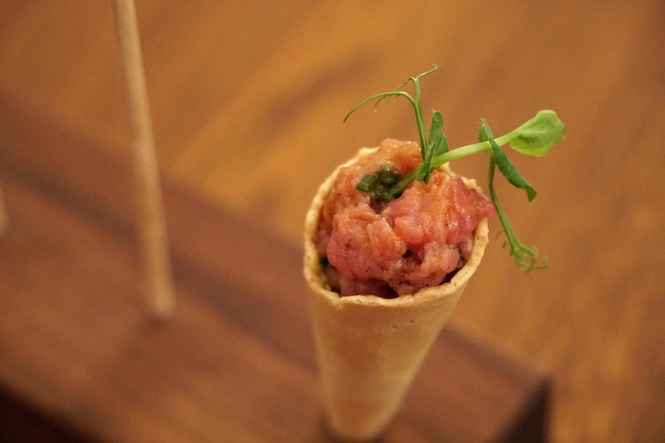 ทาทาร์เนื้อใส่มาในกรวยคอนเนตโต้กรอบ เนื้อสับออกมาละเอียด รสนุ่ม มีกลิ่นหอมอ่อนๆ อร่อยมากๆ (14/20)