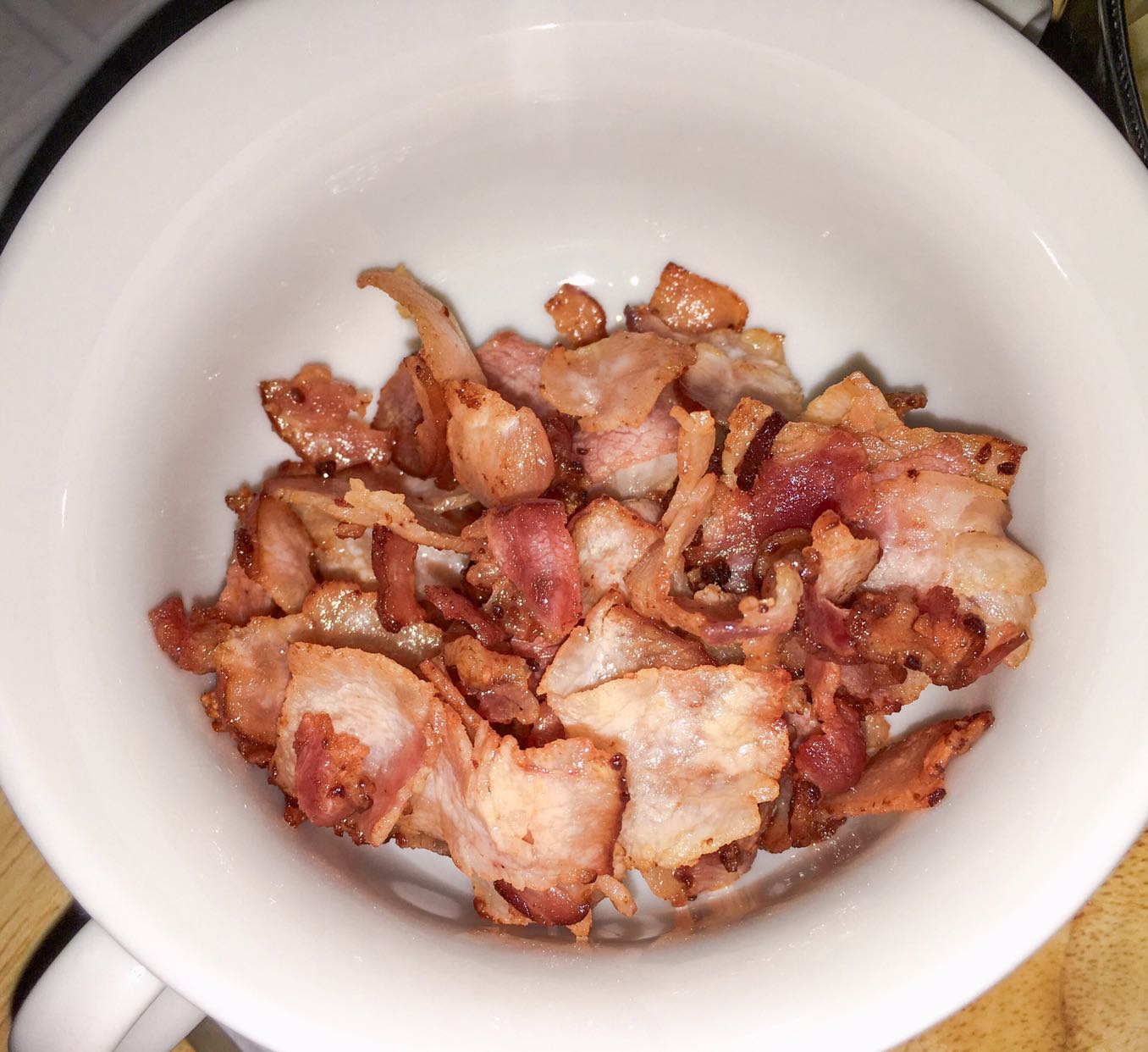 1.ทอดเบค่อนในน้ำมันเดือดจนกรอบ