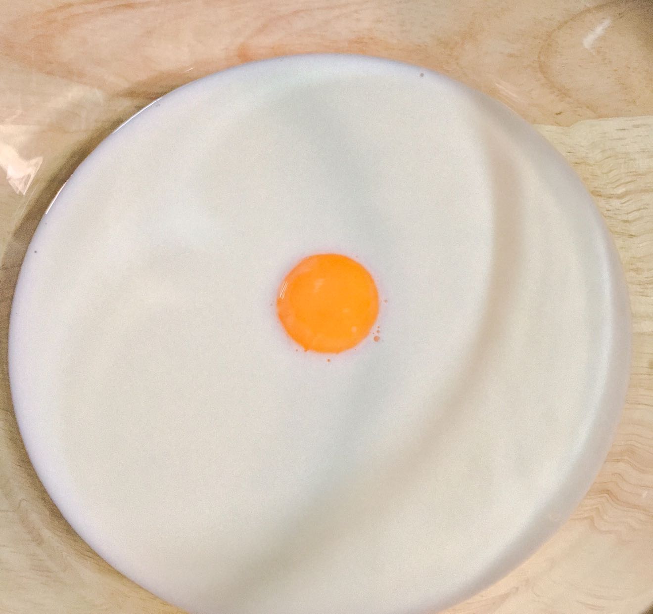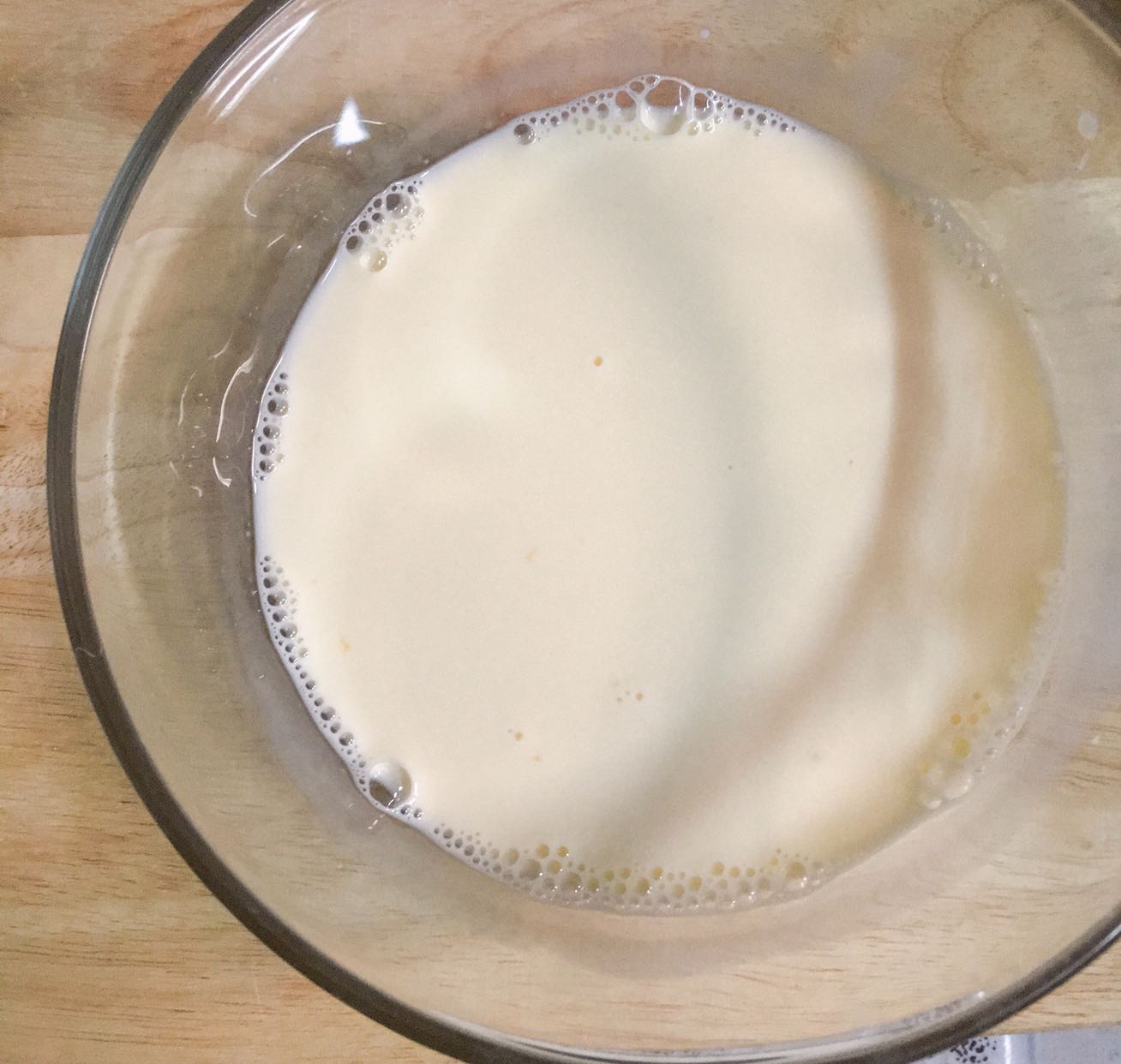 4.จากนั้นผสมนมและไข่แดง จนเป็นเนื้อเดียวกัน