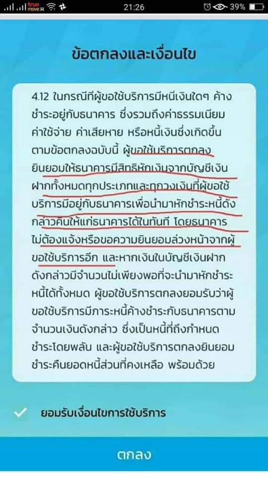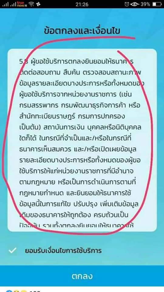 มีคนส่งมาบอกว่านี่เป็นเงื่อนไขและข้อตกลง สำหรับคนที่สมัครเข้าร่วมโครงการชิมช้อปใช้ โดยผู้ร่วมโครงการจะกด "ยอมรับข้อตกลง" ซึ่งเราคิดว่าน้อยคนที่จะอ่าน