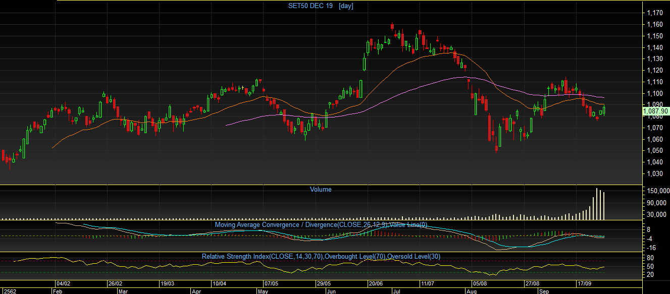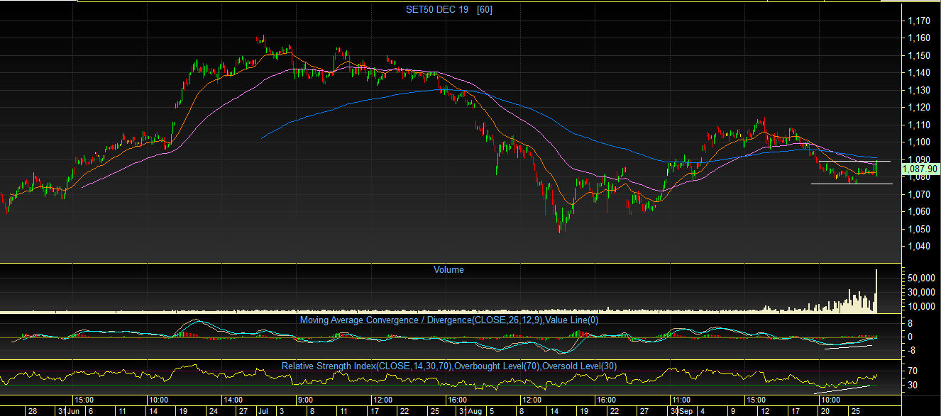 S50Z19 TF60 Min: ตลอดทั้งสัปดาห์ที่ผ่านมา ดัชนีเคลื่อนไหว Sideways ในกรอบแคบๆ (1076 – 1090 จุด) และในช่วงท้ายสัปดาห์