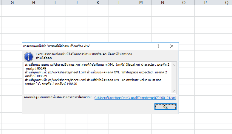 รบกวนช่วยชี้แนะด้วยค่ะ "excel พบเนื้อหาที่ไม่สามารถอ่านได้"