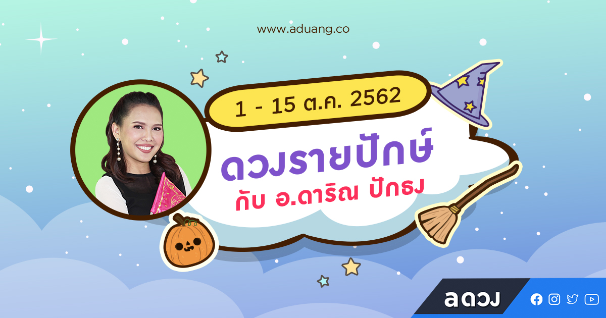 a ดวง x ดวงรายปักษ์ประจำวันที่ 1-15 ตุลาคม 2562 โดย อ.ดาริณ ปักธง