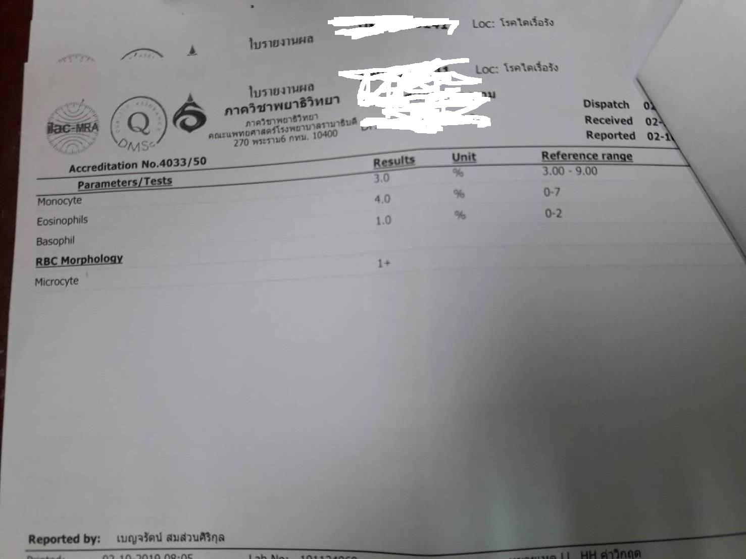 รบกวนผู้รู้อ่านผลแลปของพ่อให้หน่อยค่ะ