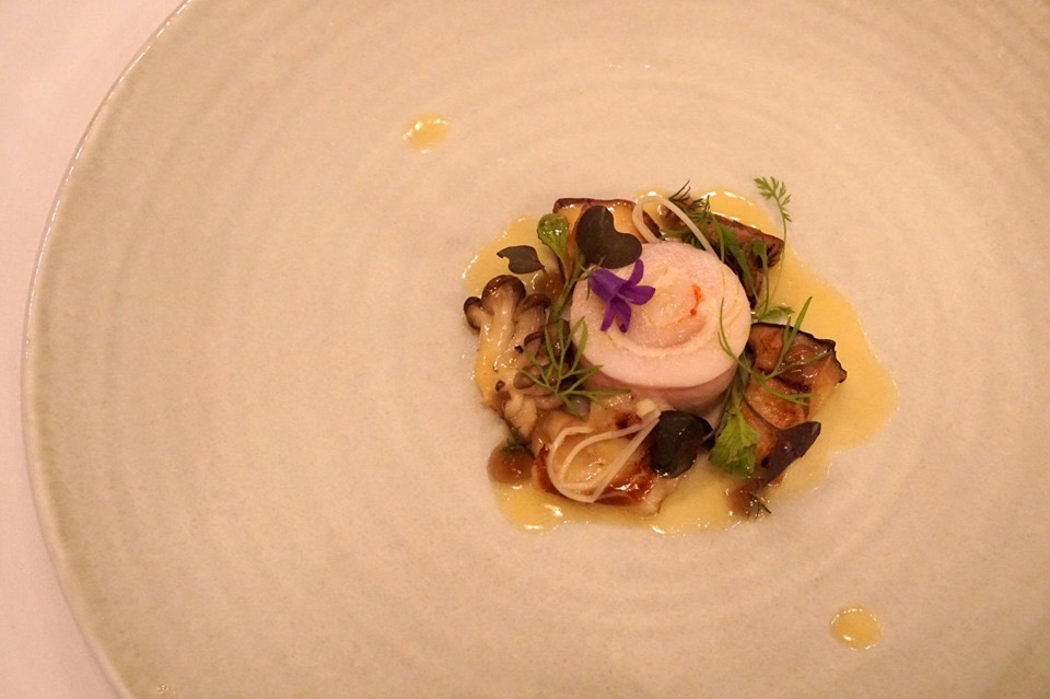 🐟 จานนี้จัดเป็นอีกคอมโบที่เด่นที่สุดในมื้อ คือโรลปลาแซลมอนเทร้าท์เนื้อนุ่ม หอม สอดไส้ตรงกลางด้วยสุดยอดวัตถุดิบอย่างกุ้งแดง Carabineros ที่หั่นออกมาสุกพอดี กัดเเล้วนุ่มเด้ง ทานกับเห็ดชนิดต่างๆ ราดด้วยซอสเนยเบลอบล็องรสหวานอ่อนๆเข้ากันได้ดีมากๆ (16/20)