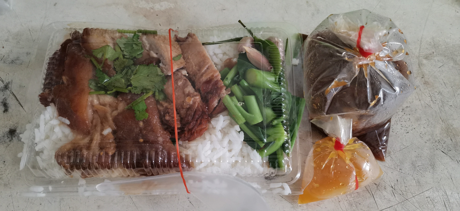 คนละร้าน ร้านที่สองบนป้ายบอก 40 แม่ค้าคิด 45 ผมถามว่า ไม่ใช่ 40 เหรอ แม่ค้าบอก ค่ากล่อง 5 บาท