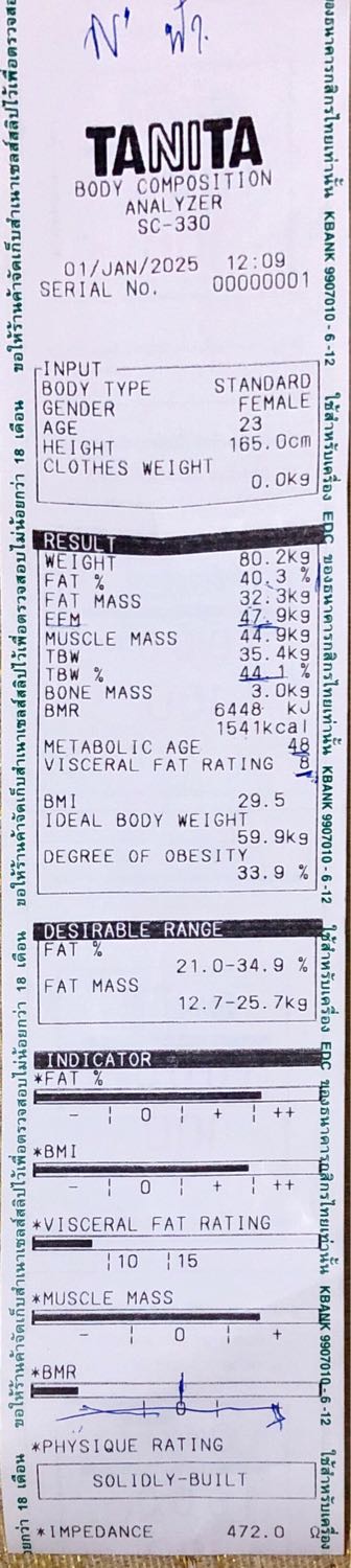 ได้มีการวัดค่าต่างๆในร่างกาย ผลออกมาดังภาพที่แนบนะคะ