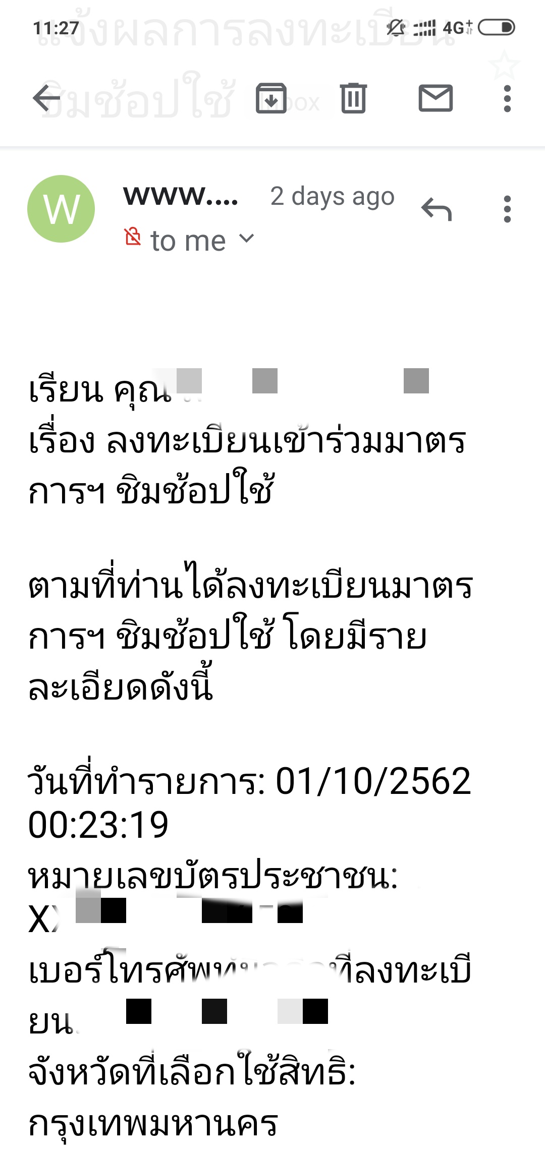 ชิมช้อปใช้ รอข้อความยืนยันกี่วัน