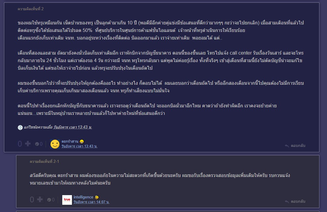 True มั่วบิลเรียกเก็บเงิน ทั้งๆ ที่แจ้งให้ปรับปรุงแล้ว