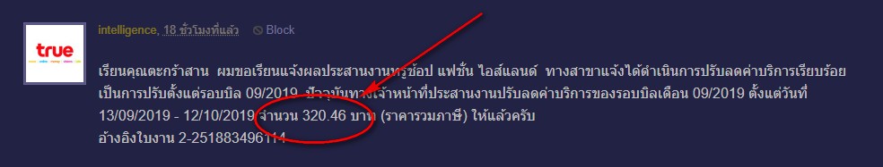 ไม่รู้ตกเลข หรือแกล้งมึนกันแน่ เก็บเกินมา 2 เดือน เดือนถัดไปยังจะเก็บเงินอีก ที่ถูกต้องอีกสองเดือนถัดไปต้องไม่เก็บเงิน แล้วเดือนที่สามถัดไปมาเรียกเก็บ 320.46 บาท ถึงจะถูกนะ ตอบหน่อยเถอะ True