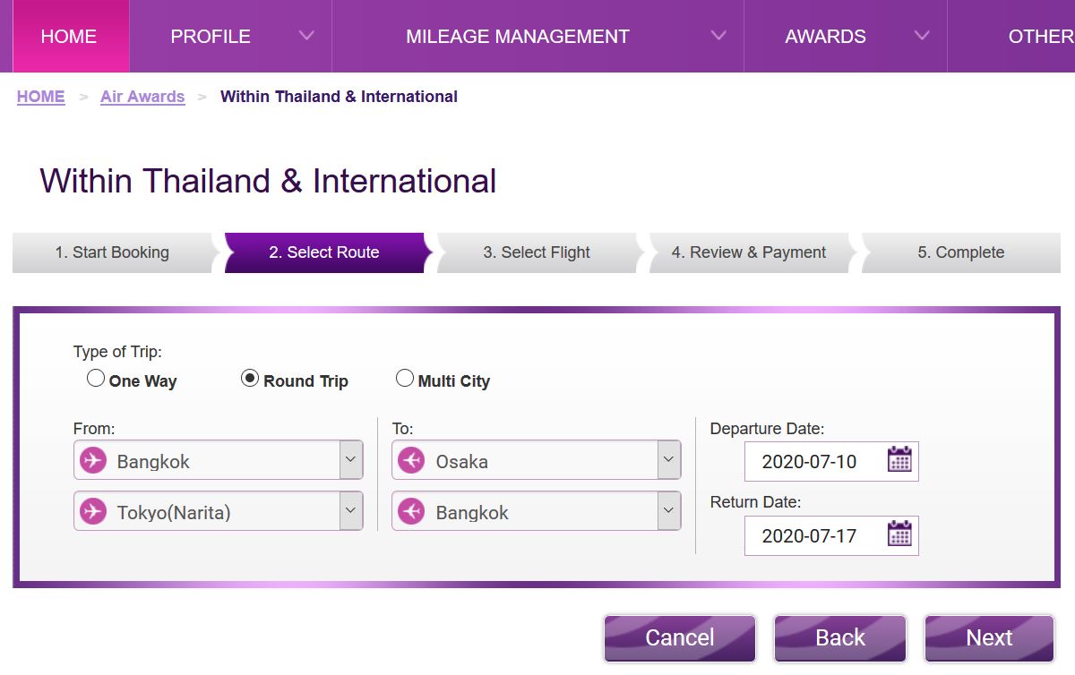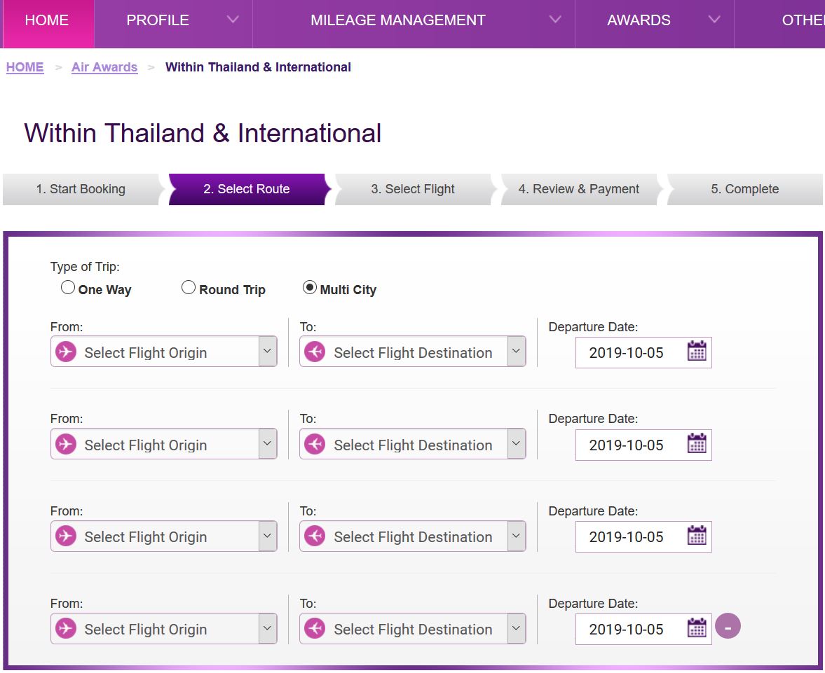 = Thai Airways ( การบินไทย ) แลกไมล์ Online สามารถเลือกแบบ Multi-Location ได้แล้ว