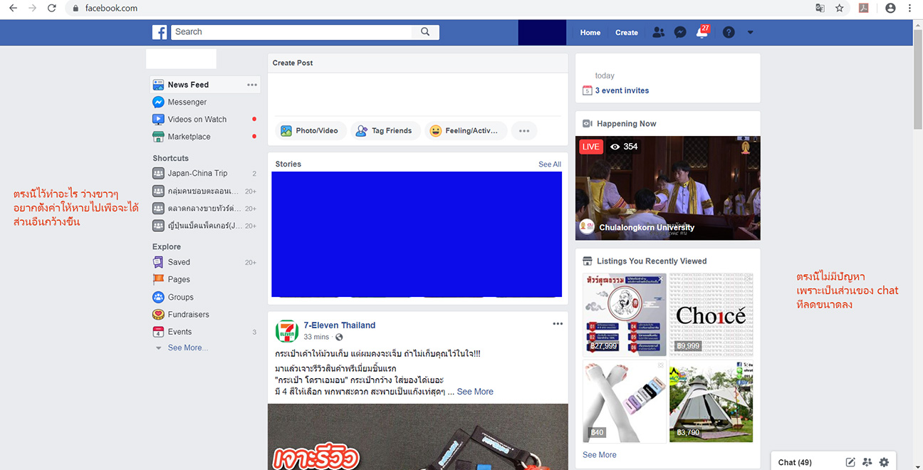 ตรงด้านซ้ายมือ ว่างขาว ต้องการตั้งค่าให้หายไป หรือ แคบลง เพื่อให้ส่วนตรงกลางได้กว้างขึ้นค่ะ