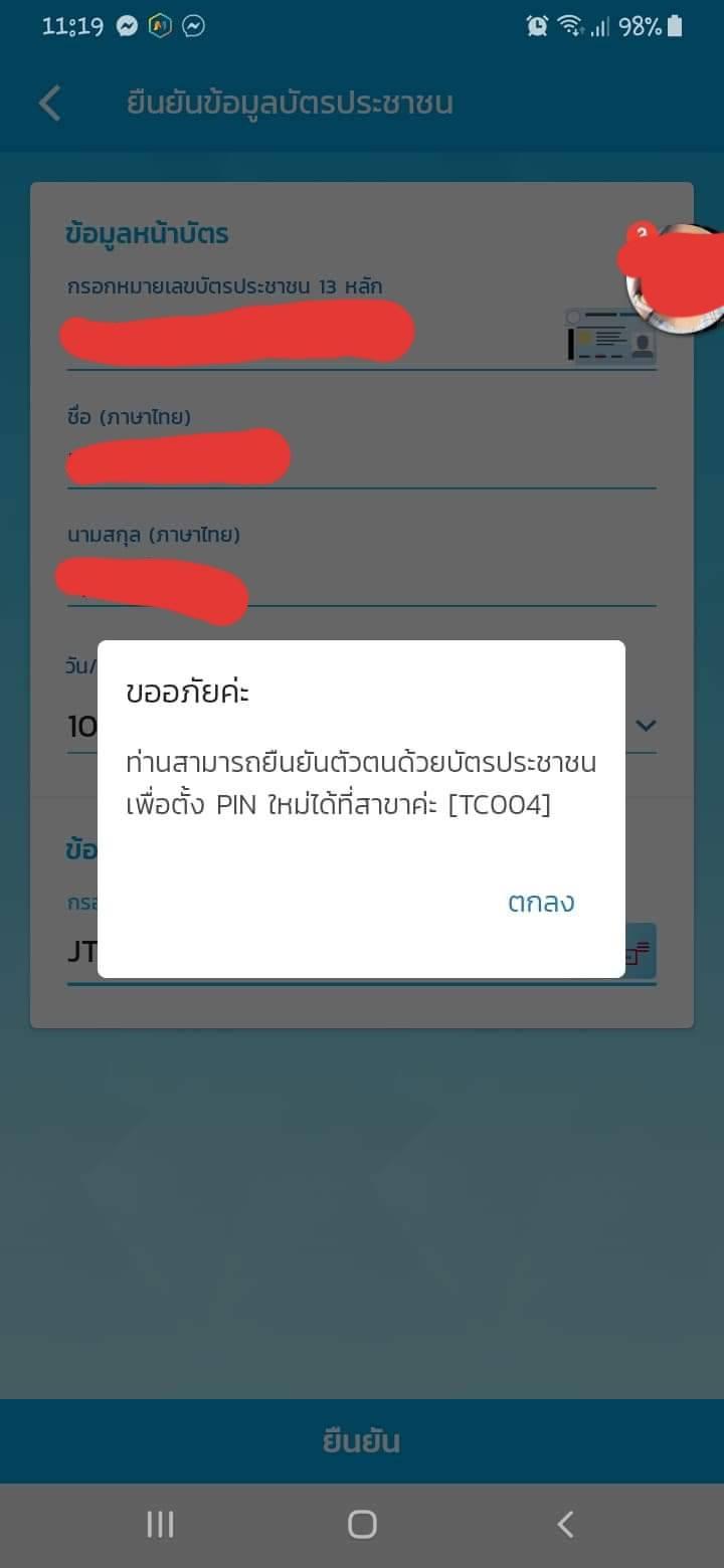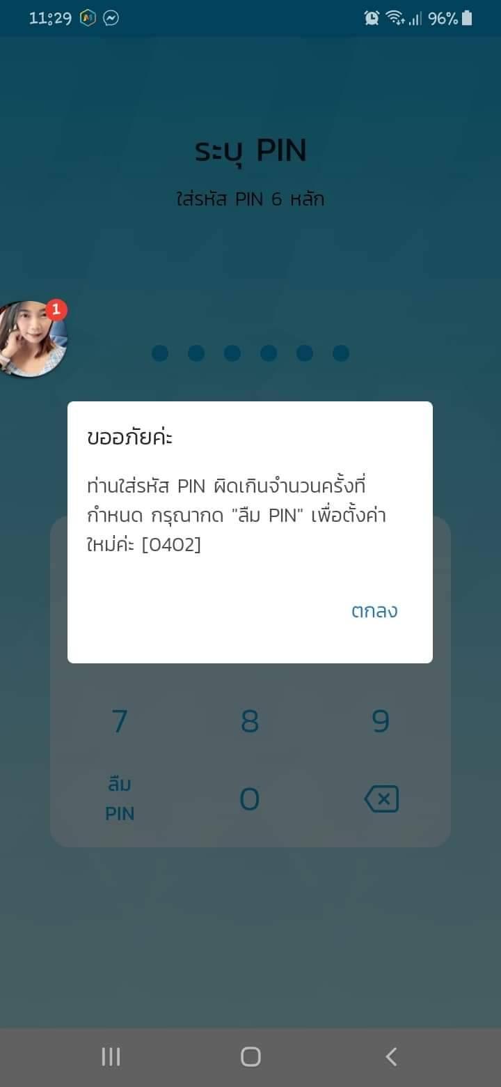พอดียืนยันตัวตนเสร็จแล้วแต่เข้าไม่ได้ แอพบอกใส่รหัสpinผิด ลืมรหัสแล้วก็ยังเข้าไม่ได้