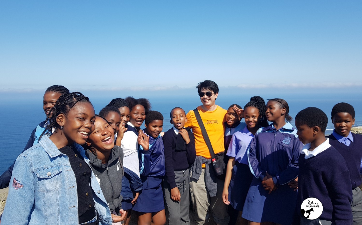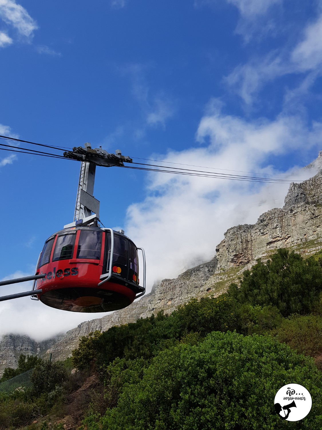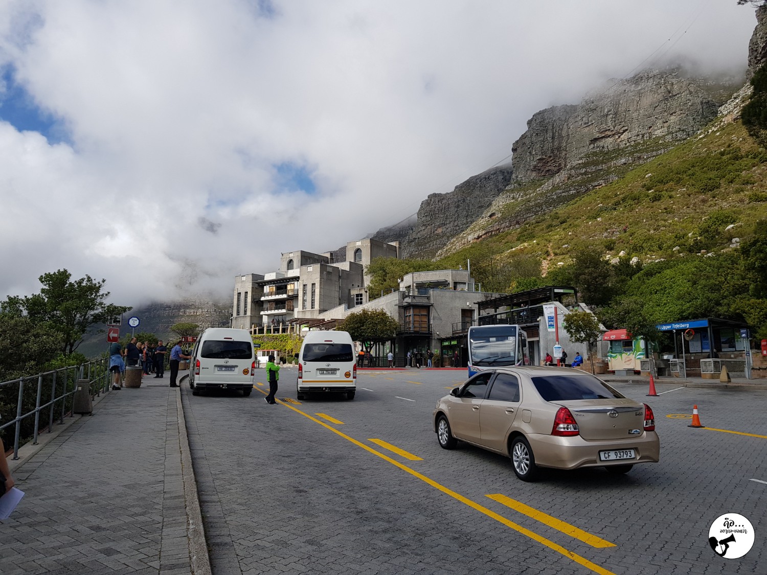 เกือบเที่ยงแล้วได้เวลา ฟ้าเริ่มเปิดตามพยากรณ์อากาศ ตรงไป Table Mountain โชคดีคนไม่เยอะเท่าไหร่ แต่มีกลุ่มเด็ก ๆ มาทัศนศึกษากัน