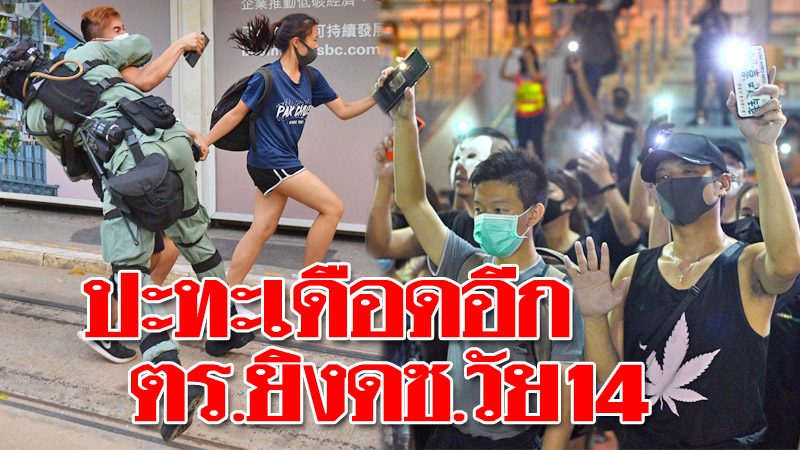 ฮ่องกง ตำรวจยิงกระสุนจริง!!! โดนขาเด็กชายวัย 14 สาหัส!!! ม็อบไม่สนแบน ใส่หน้ากากอนามัย ประท้วงต่อ!!!
