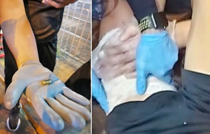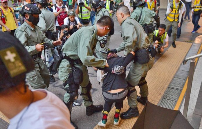 วันเดียวกัน สำนักงานตำรวจฮ่องกงออกแถลงว่า เจ้าหน้าที่ตำรวจนอกเครื่องแบบนายหนึ่งถูกกลุ่มผู้ประท้วงรุมทำร้าย และขว้างระเบิดขวดใส่จนเกิดไฟลุกไหม้ที่รองเท้าทั้งสองข้าง จากนั้นยิงปืนออกไป 1 นัดเพื่อป้องกันตัวเอง แต่ไม่ระบุว่าถูกผู้ประท้วงหรือไม่