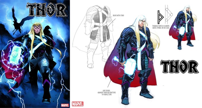 และแล้วธอร์ยุคปัจจุบันก็กลับมามีหัวเรื่องเดี่ยวของตัวเองอีกครั้ง แต่เขากำลังจะเปลี่ยนลุคใหม่งั้นหรือ ติดตามได้ใน...Thor!! ภาพร่างเผยว่าปุ่มกลม ๆ บนเสื้อจะเรียงเป็นอักษรรูนที่อ่านว่า Thorn (