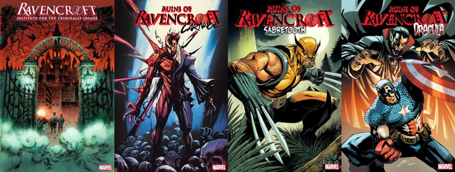 อีเวนต์ Absolute Carnage จบ แต่ควันหลงยังไม่จบ เรือนจำที่มีบทบาทในเรื่อง สถาบันราเวนครอฟต์ จะมีเรื่องราวสยองขวัญอะไรมาเล่าให้เรารับรู้ ติดตามได้ใน...Ravencroft!! พร้อมด้วยตอนพิเศษเฉพาะสำหรับตัวละครบางตัวภายใต้แบรนด์ Ruins of Ravencroft ได้แก่ RoR: Carnage, RoR: Sabretooth และ RoR: Dracula (อาจมีอีก)