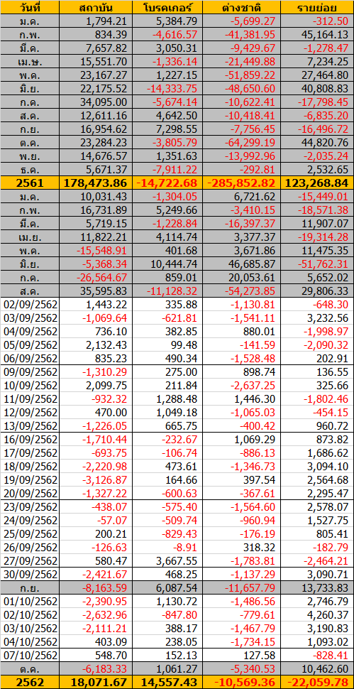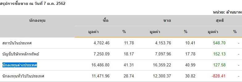 Sinthorn Summary 7/10/2562 : ต่างชาติซื้อสุทธิ 127.58 ลบ.