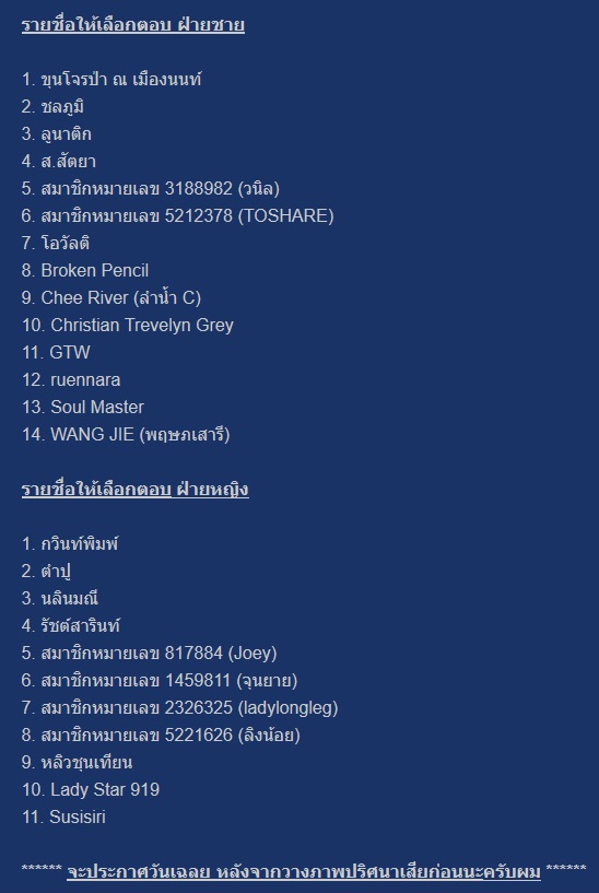 มาอ่านกัน ทีละคนๆ ก่อนจะไปโหวดกัน และทายว่าใครเป็นใครนะครับ ^^