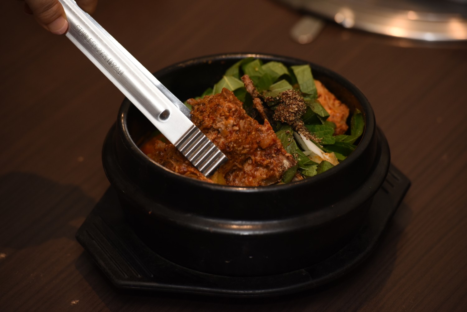 พนักงานมาตัดกระดูกหมูในซุปให้ด้วย นะ เนื้อย่างก็มาคอยตัด เป็นชิ้นๆให้กินกะผัก พอดีคำ