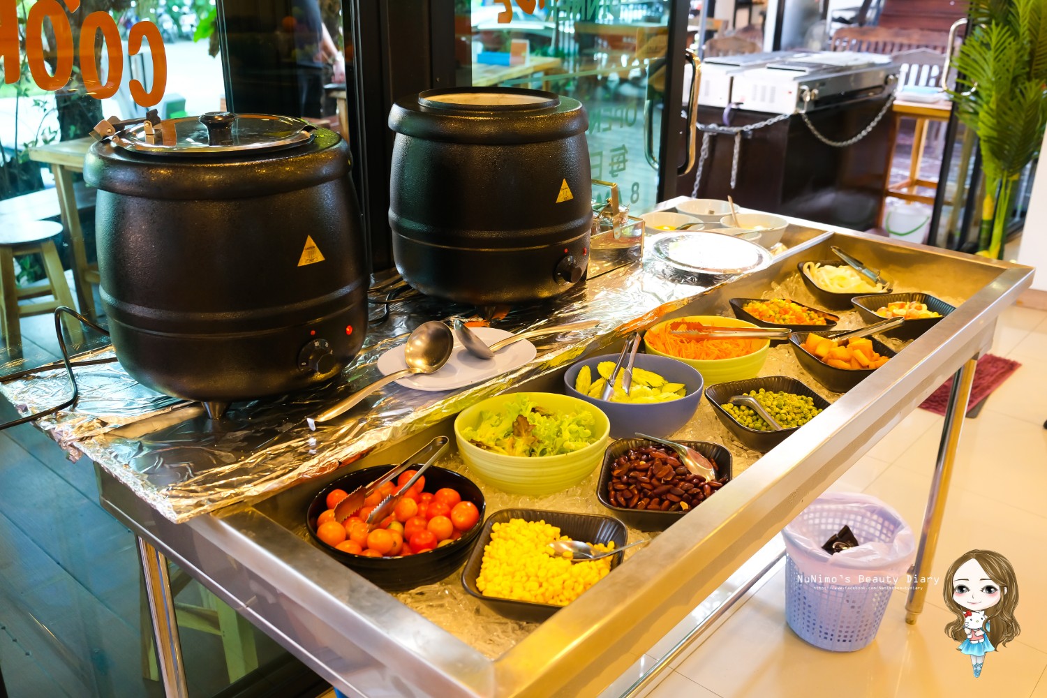 นอกจากนี้มีสลัดบาร์และผลไม้ไว้บริการด้วย
