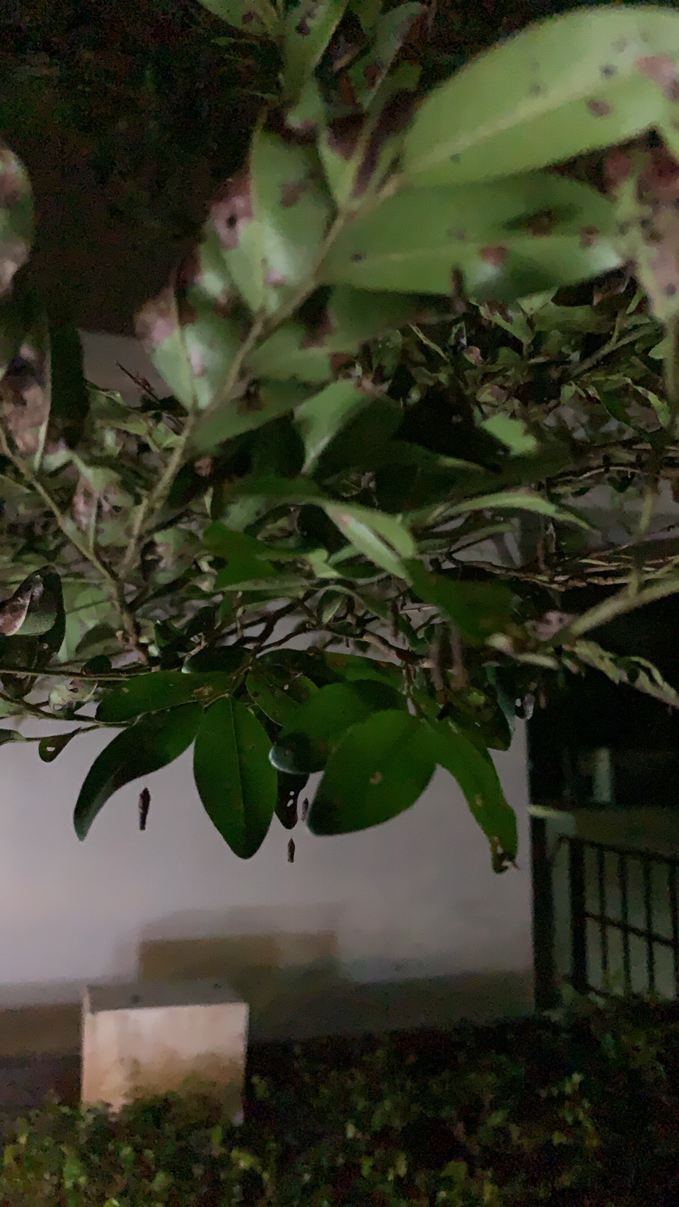 ตอนนี้ใบร่วงเยอะมาก หลังจากที่ฝนตกหนักในอาทิตย์ที่ผ่านมา ใบที่เหลือบนต้นก็เป็นแบบนี้