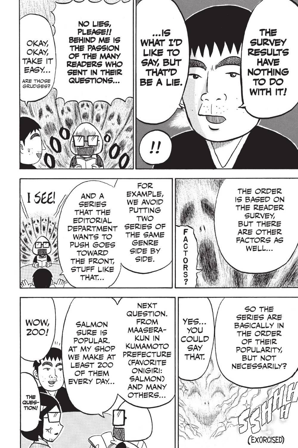 - ตารางอันดับมาจากสารบัญ ซึ่งการเรียงลำดับภายในเล่มนั้นมาจากผลตอบรับของผู้อ่านจาก 7 เล่มก่อนหน้า โดยเรื่องที่ได้ขึ้นปกหรือได้หน้าสีจะไม่ถูกนำมาจัดอันดับด้วย แต่การตัดสินใจในท้ายที่สุดนั้นก็ขึ้นกับทีมบก.และหัวหน้าบก. ดังนั้นจึงมีปัจจัยอื่นๆที่เข้ามาเกี่ยวข้องด้วย สารบัญ/ตารางอันดับจึงไม่ใช่ผลโหวตเพียงอย่างเดียว