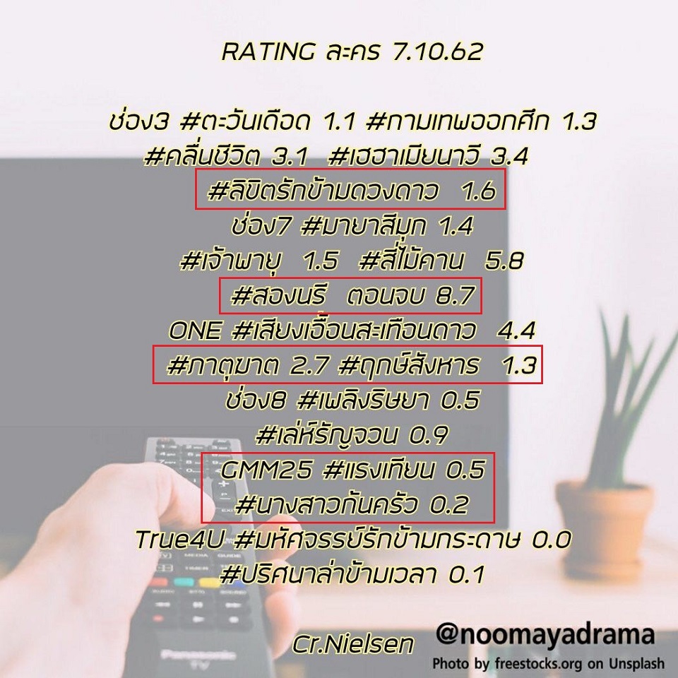 ตัวเลข เรตติ้งการชมละคร ณ ปัจจุบัน