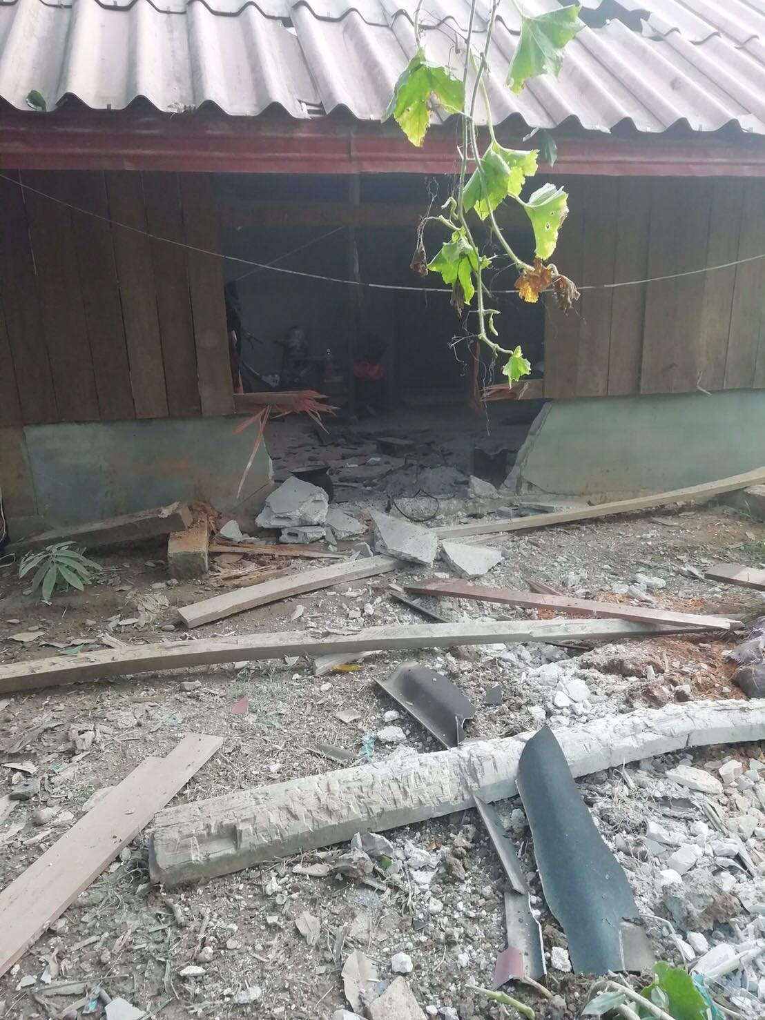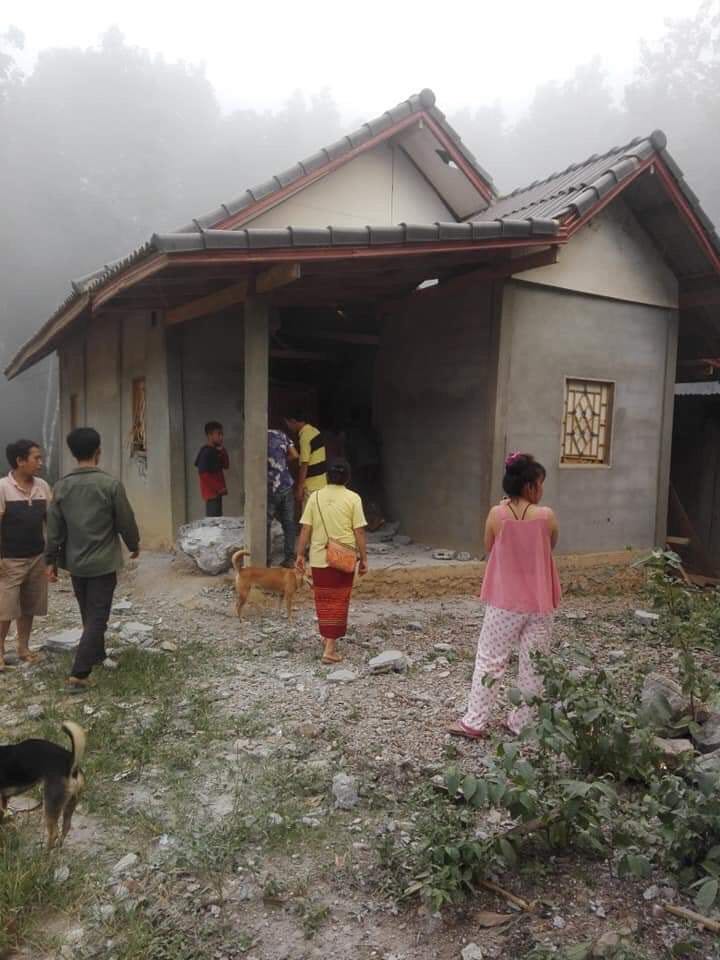 หินลอยมาตกบนหลังคาบ้านคนในลาว