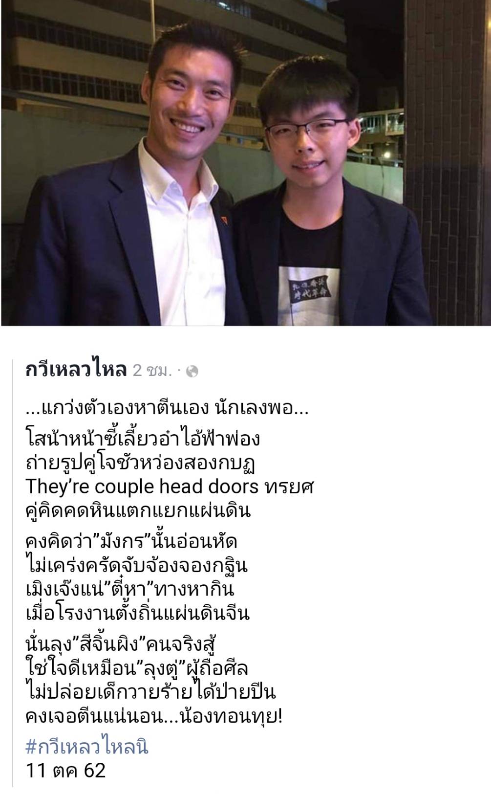 ถ่ายรูปคู่โจชัวหว่องสองกบฏ They're couple head doors ทรยศ คู่คิดคดหินแตกแยกแผ่นดิน .. @