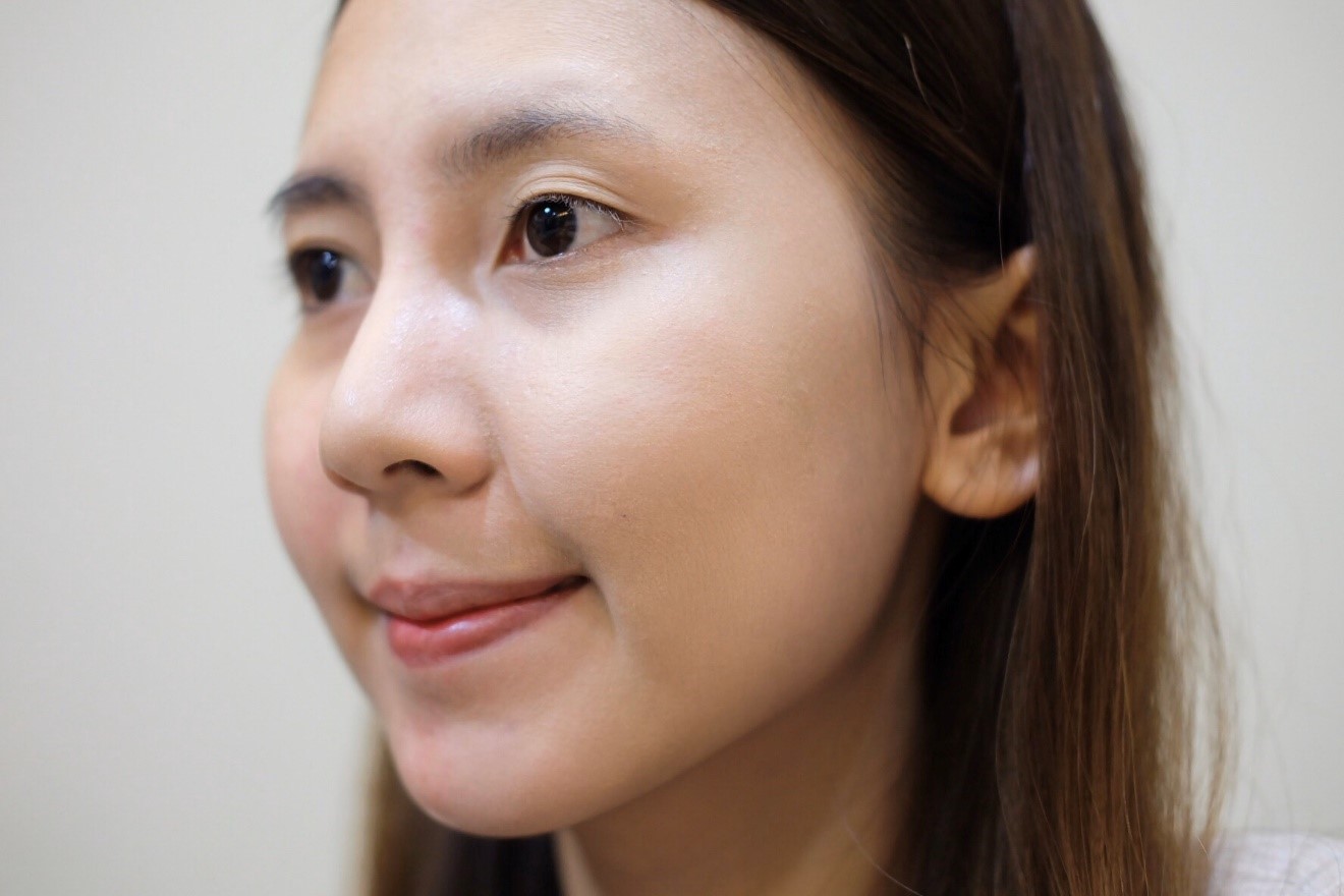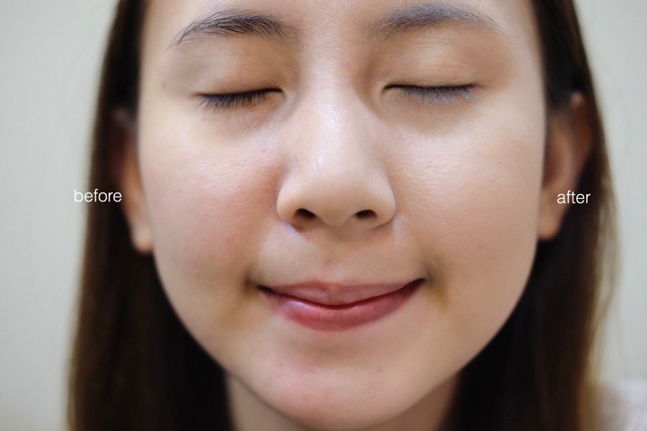 เห็นชัดอีกแล้วว่ามันเรียบเนียนและดูเป๊ะปังกว่าอีกข้างที่ยังไม่ได้ทา และหน้าก็ดูไม่เปื่อยแล้วด้วย ฮืออออรัก Ver.88