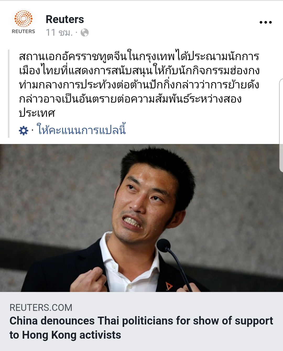 เรื่องละเอียดอ่อนขนาดนี้ ยังไม่รู้อีกหรอว่า ไม่ควรไปยุ่ง หรือมีทีท่าสนับสนุน เรื่องภายในของเขา เขากำลังปวดหัวว่าจะยุติการชุมนุมของม๊อบอย่างไรแบบไม่ต้องมีการปะทะหรือใช่กำลังทหาร แต่นักการเมืองไทยกลับบอกการชุมนุมของชาวฮ่องกงคือแรงบันดาลใจไปซะงั้น